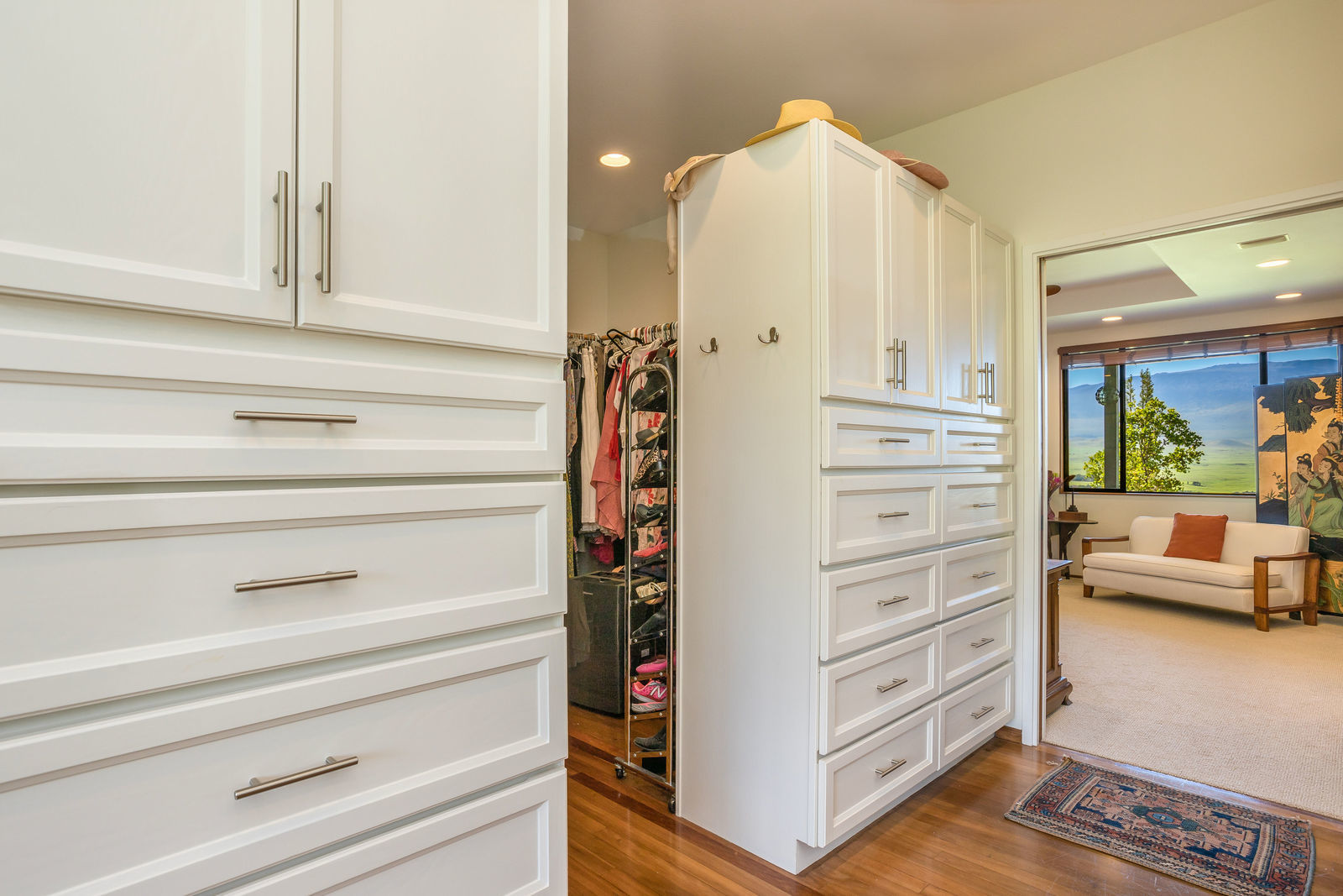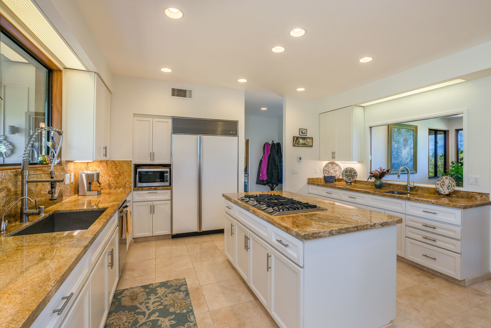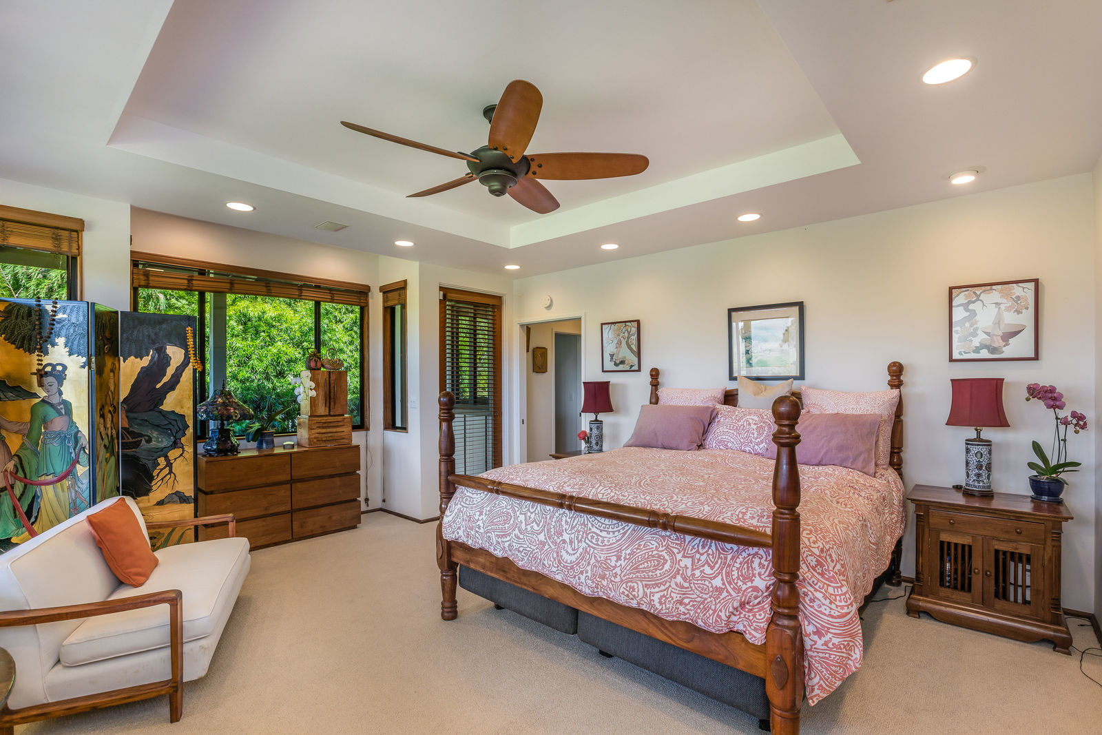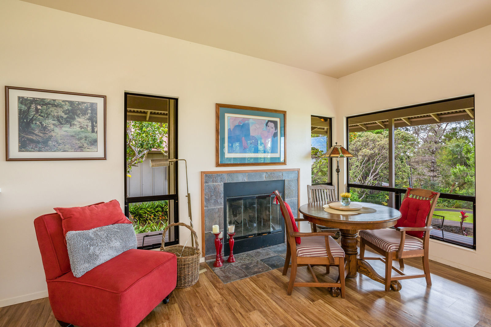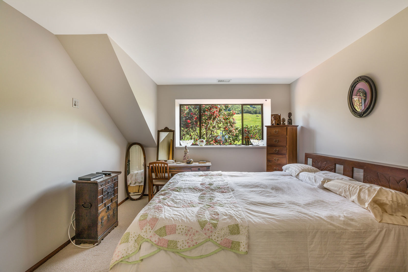 PRIVATE COMPOUND WITH FABULOUS MAUNA KEA VIEWS! Main home plus legal ohana (second home) on 1.2 acres.This property is adjacent to acres and acres of Hawaiian Home Lands pastures and the views from the back of the property are also gorgeous! The main house is 3299 sq. ft. with 3 bdrms., 2 1/2 bths., a den/office which could easily be a 4th bdrm. and two additional framed attic spaces that are 408 sq. ft. each. (Could also be bdrms.) There is also a small sitting room upstairs.The ohana is 864 sq. ft. with 2 bdrms., 1 bth. living room, kitchen and fireplace. This dwelling also has a detached 400 sq. ft. garage.Each home has a covered lanai that surrounds three sides of the house and gives easy access to the beautifully landscaped yard and gardens. Each house also has an enclosed garage with the main garage of 816 sq. ft. being large enough for a workshop if you have an at-home hobby.The floors of the main home are chocolate heart eucalyptus, there is a fireplace between the living room and family room, central heating, a large kitchen for those who love to cook includes an island and also an additional sink in the counter separating the kitchen and dining room. The master bedroom suite is located on the 1st floor. There is also a separate guest 1/2 bath off of the family room.The second house (Ohana) has been used for several years as a rental. The current tenants are on a month to month basis.
