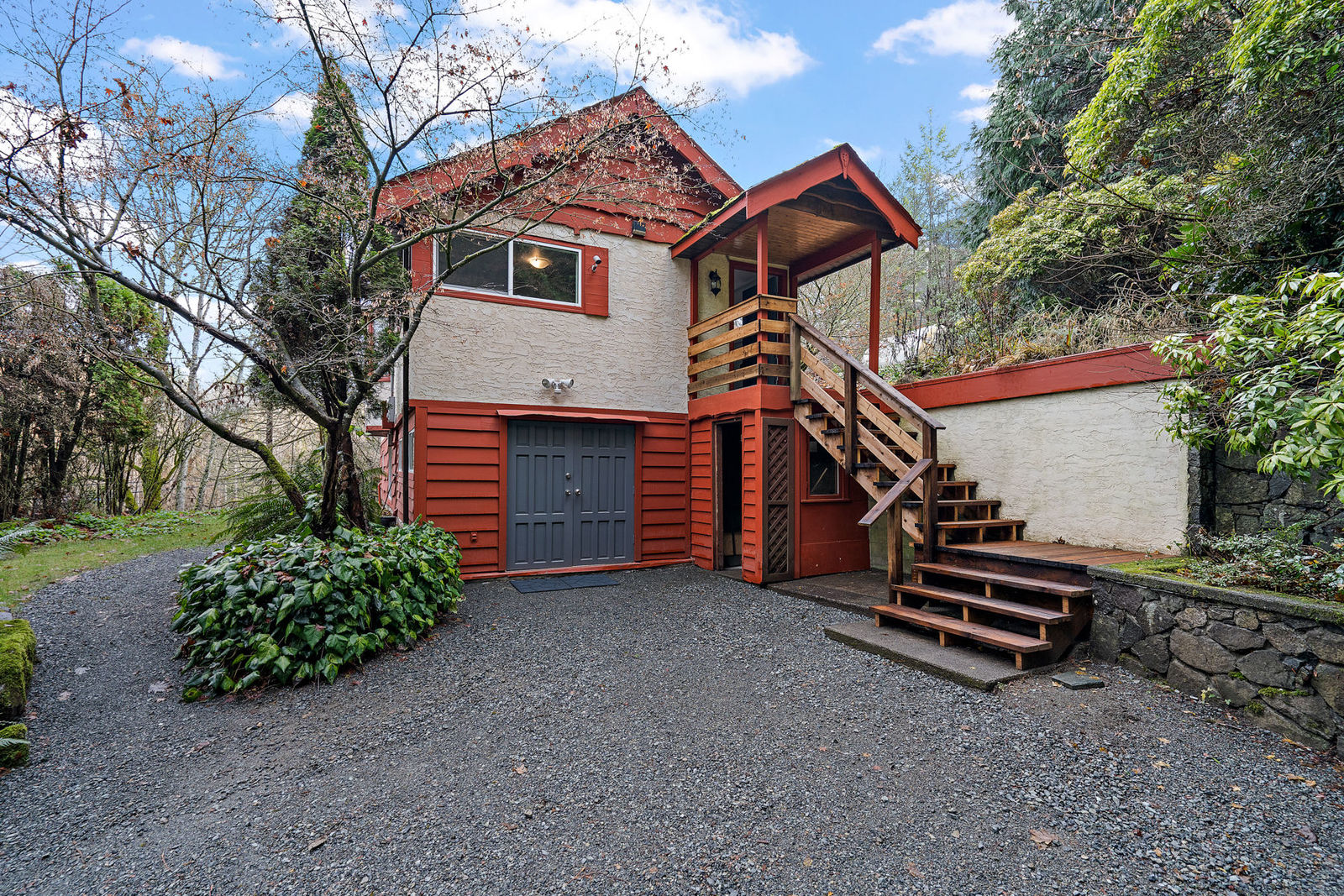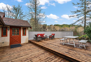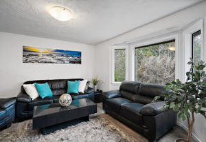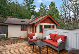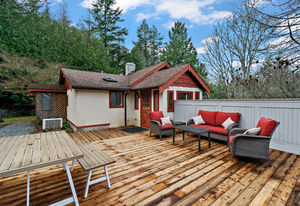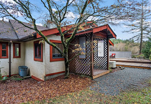 Welcome home to this nicely updated home sitting on almost a full acre! This property sits well off the street and the abundance of trees provides ample privacy. Featuring 3 bedrooms up with 1 bedroom suite down, this home has been updated from top to bottom, including new flooring and paint, new washer/dryer, new kitchen downstairs, marble tile backsplashes, new light fixtures, and more! You'll love the bright updated kitchen with gorgeous backsplash and new countertops opening to the dining room that is surrounded by windows for natural light, with access to the deck. There are 3 updated bathrooms that feature new tile, vanities and bathtubs. Outside offers an enormous deck area for outdoor entertaining, lots of adventure space for kids to roam, a greenhouse, stunning Japanese maple trees as well as spots for sheds or outbuildings. Situated near Latoria Walk Park, Royal Bay beach and park, and shopping at the Red Barn Market. Don't miss the virtual 3D Tour and neighborhood video.