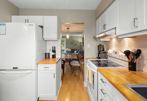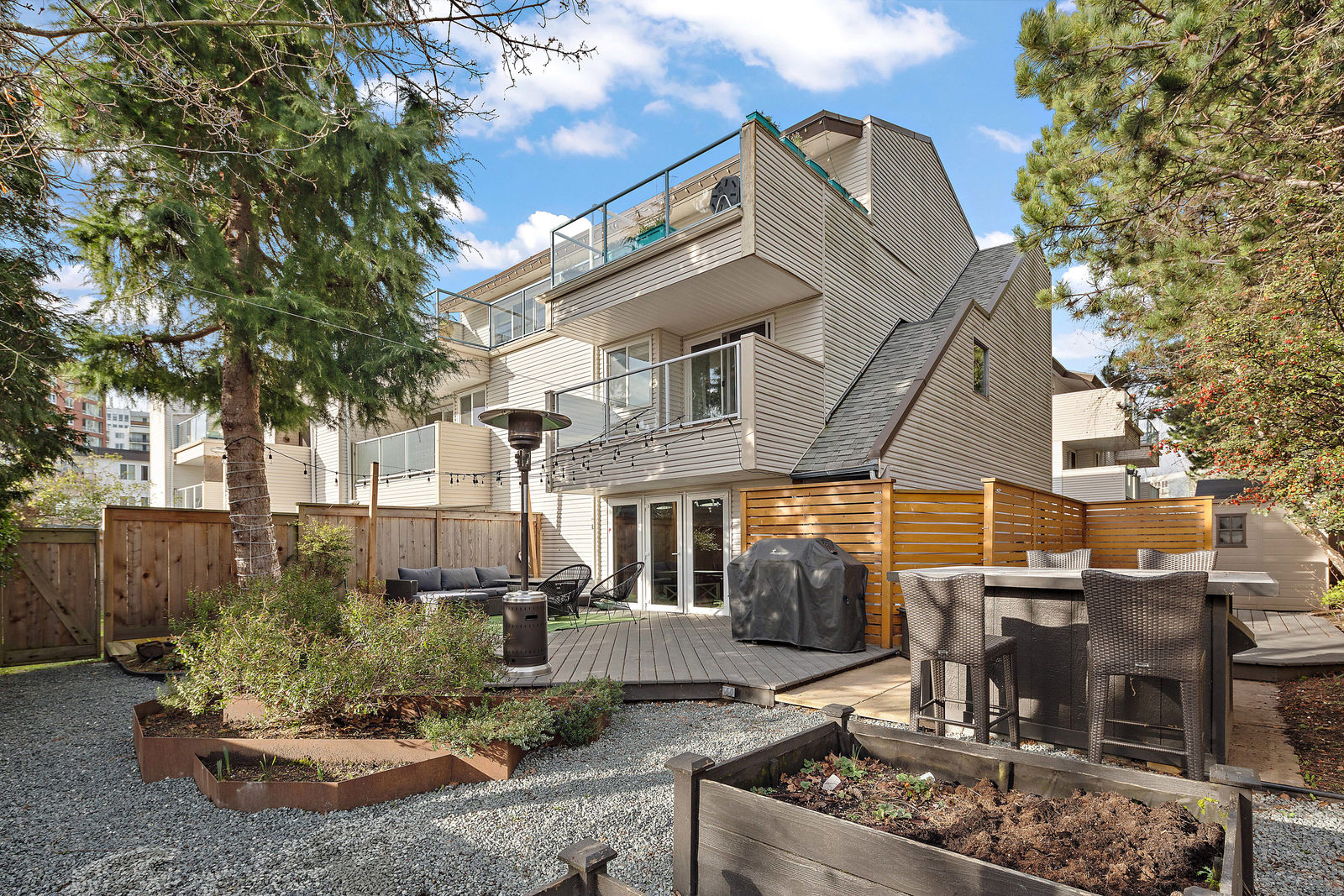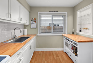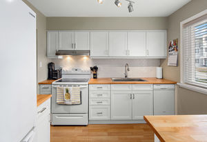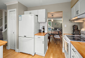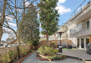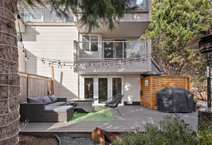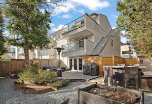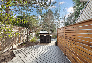 Location! location! location! Walk to downtown from this gorgeously updated end unit 2 bed plus den, 3 bath townhome with large private yard. Step into this home with fabulously renovated kitchen, newer windows, flooring and paint. Open concept dining and living room overlooks large, private, south-facing and professionally landscaped backyard. Upstairs is cozy den with private south-facing deck, two large bedrooms, full bathroom and master bedroom with ensuite bath and walk in closet.