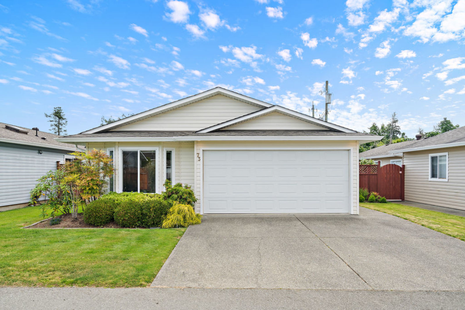 Rancher style living at it's finest in the highly sought after Hawthorne Village Community. This bright and spacious home has seen recent updating, including paint, flooring and more! The floor plan is ideal with two bedrooms located at opposite ends and two full bathrooms, including one with a tub. The very spacious master features a beautiful ensuite with walk in shower and two full size closets. Other features include a large bright living room with vaulted ceilings & electric fireplace, dining area, roomy kitchen with breakfast nook. A double garage and driveway offering plenty of room for parking and storage. The fully fenced yard with mature landscaping is sure to impress. Surrounded by friendly and welcoming neighbours, this is one of the nicest communities to live in! Conveniently located close to all amenities and a short drive to downtown Sidney.