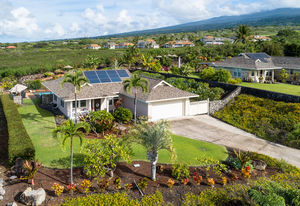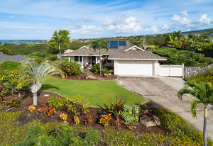 The home is ideally situated on the edge of Kahakai Estates, beside undeveloped acreage.