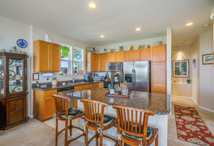 Granite kitchen counters and buffet, 9' ceilings, 8' entry door, exterior security monitors.