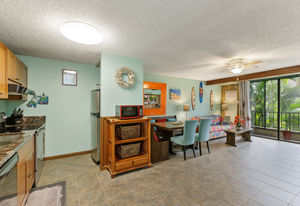 Expanded interior living area, tiled flooring throughout, air conditioned living room.