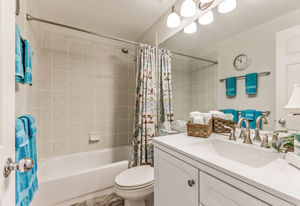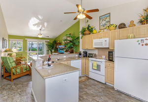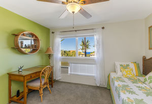 Partial ocean view is visible from the front porch, kitchen dining nook and guest bedroom.