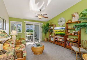 Upgraded 2 bedroom, 2 bath upstairs unit looking over rolling lawns and freeform pool.
