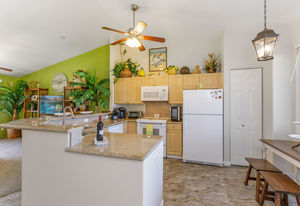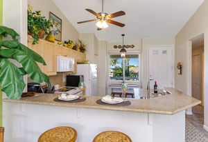 Granite countertops, vaulted ceilings in living/kitchen area, all flooring recently replaced.