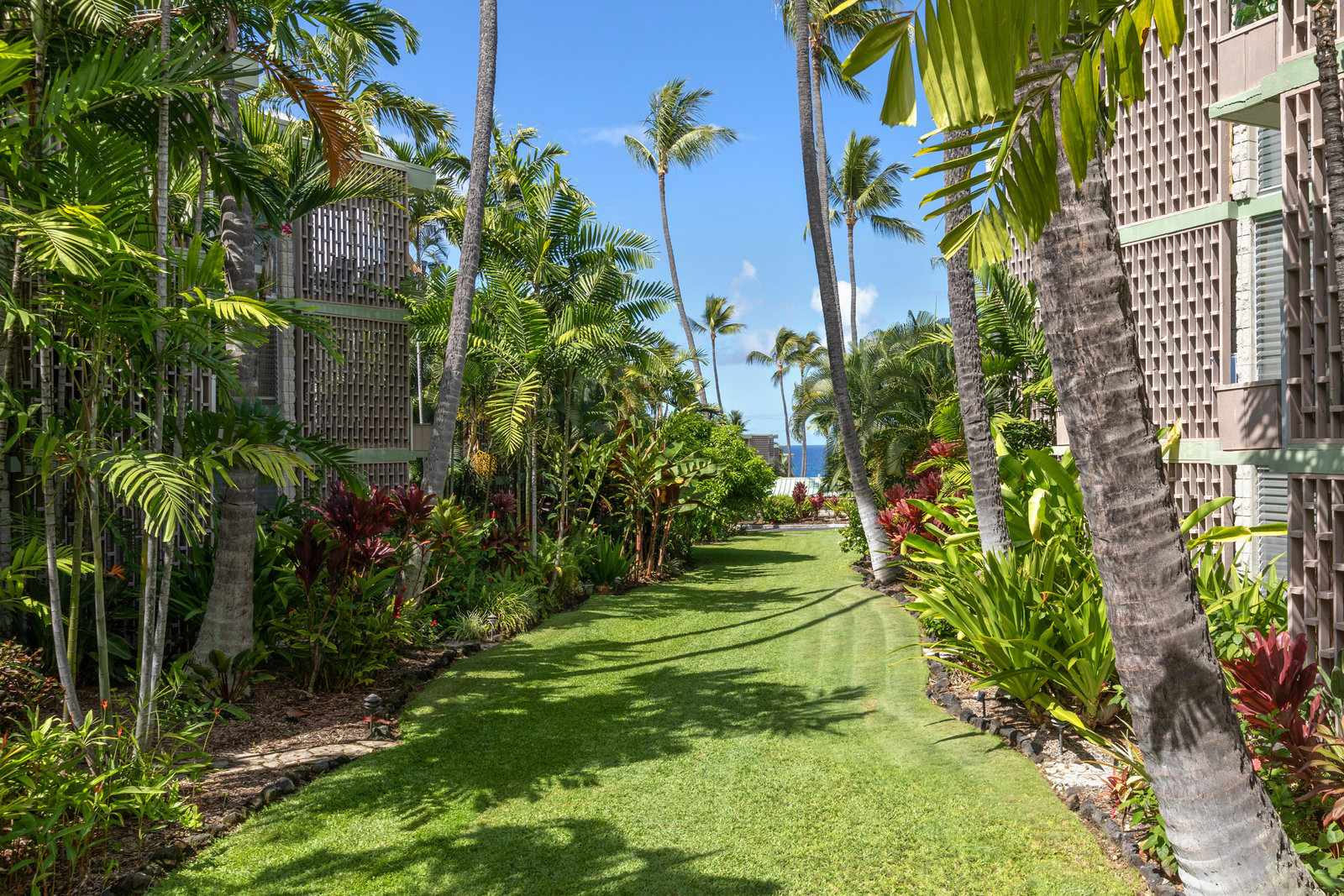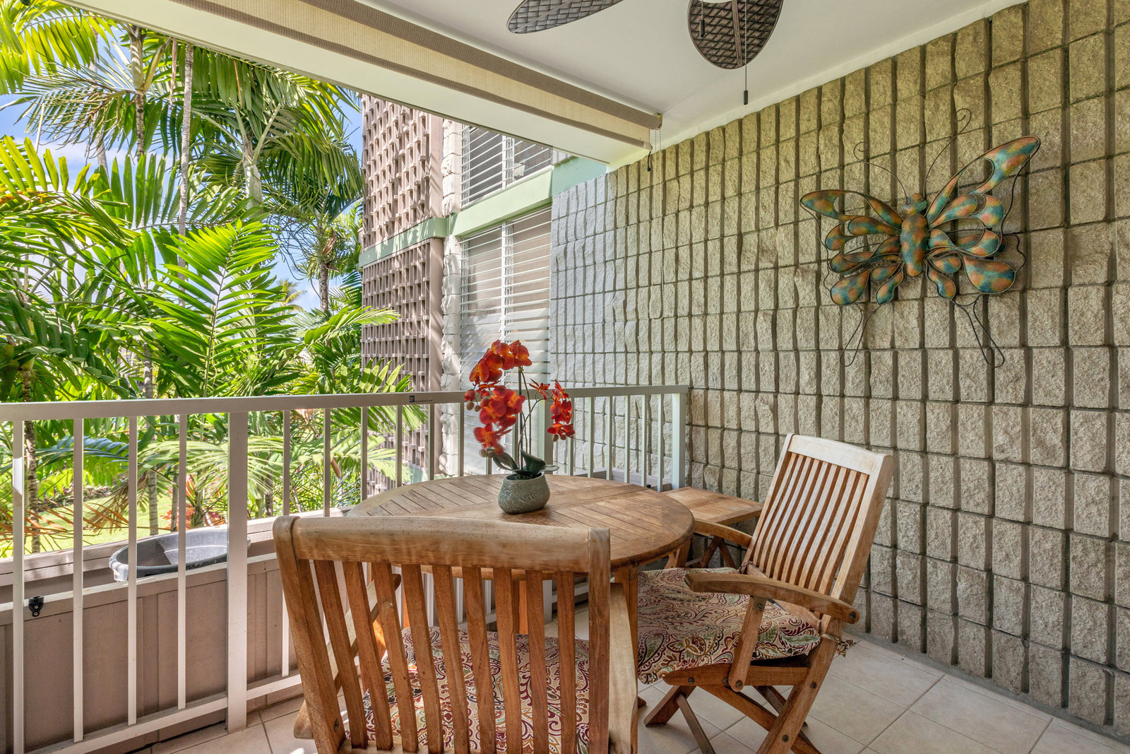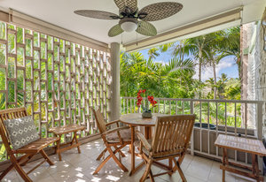Relax on your private lanai looking out onto lush, tropically landscaped grounds.