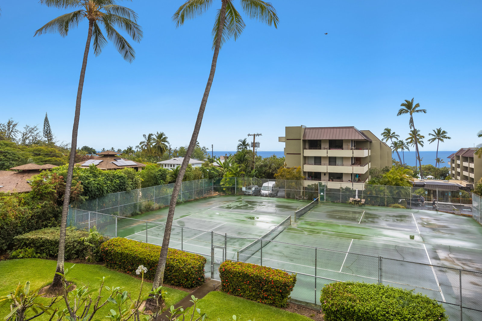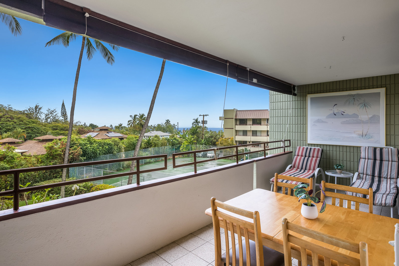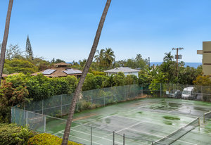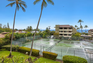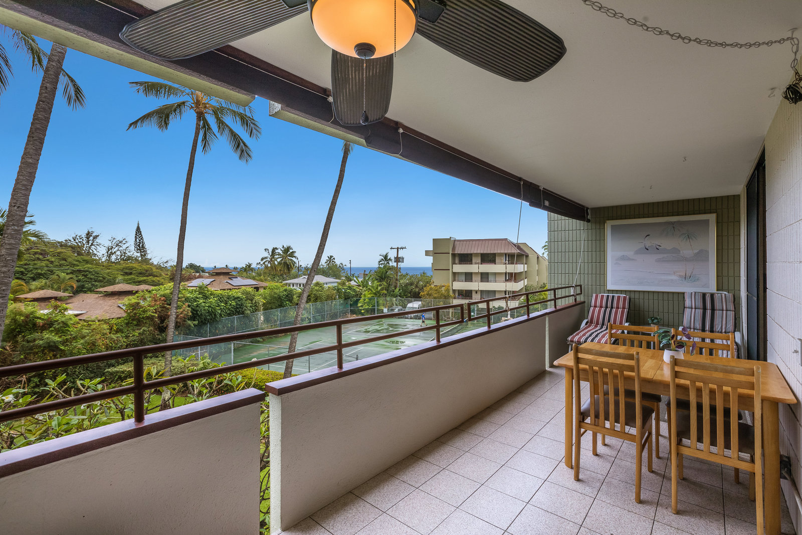 Large lanai with ocean views over the grounds and tennis courts (currently being rebuilt).