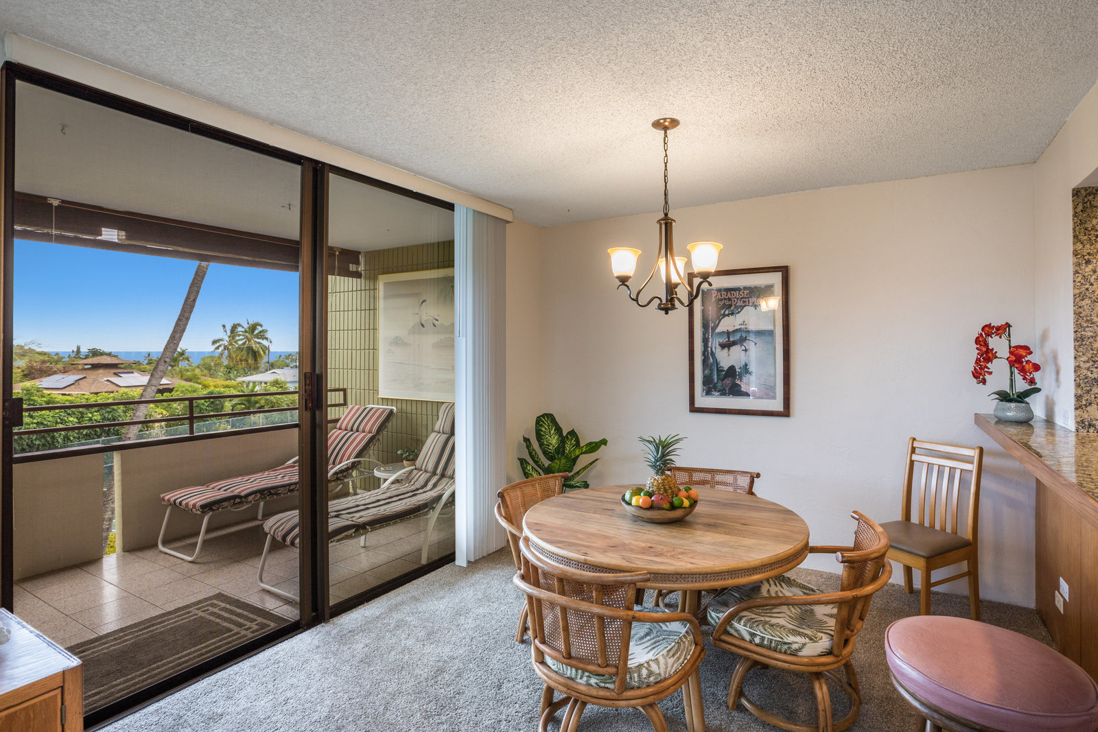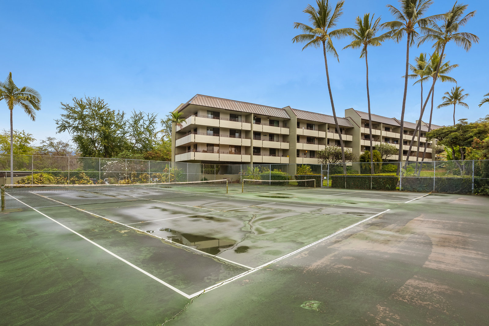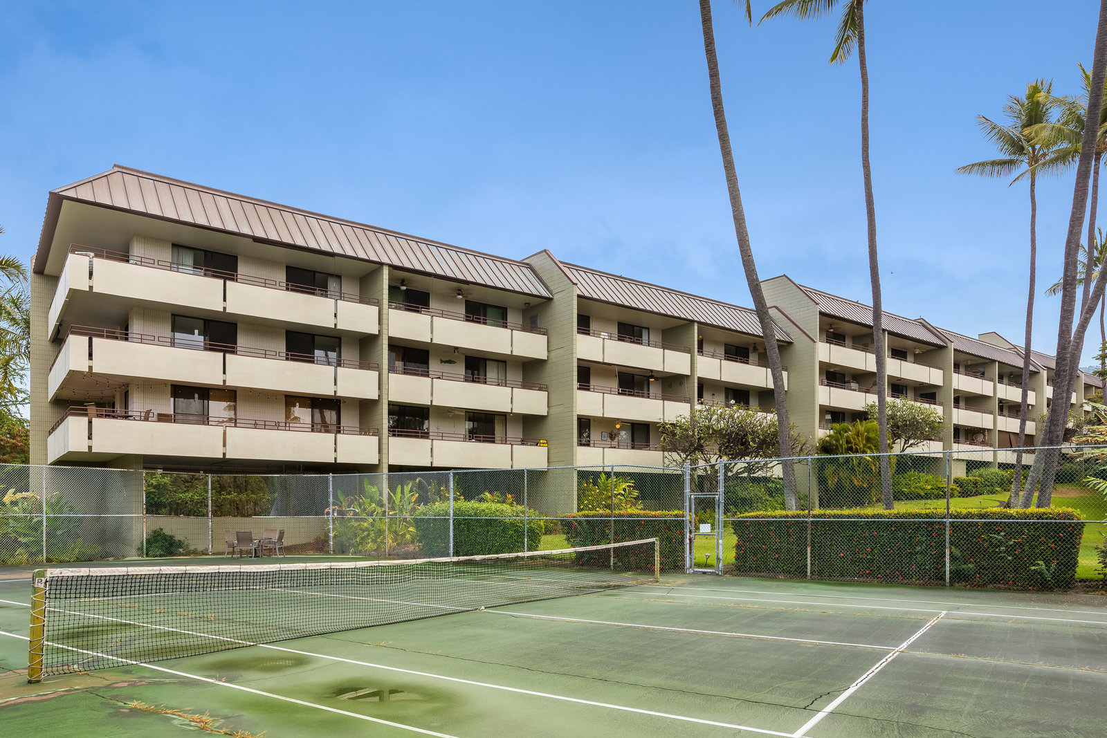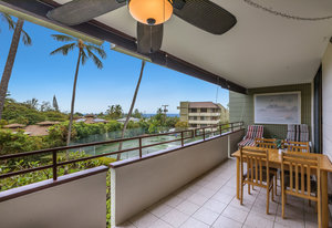 Large lanai with ocean views over the grounds and tennis courts (currently being rebuilt).