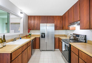 Tiled flooring throughout lower level, brand new kitchen appliances.