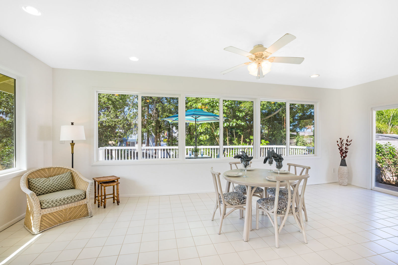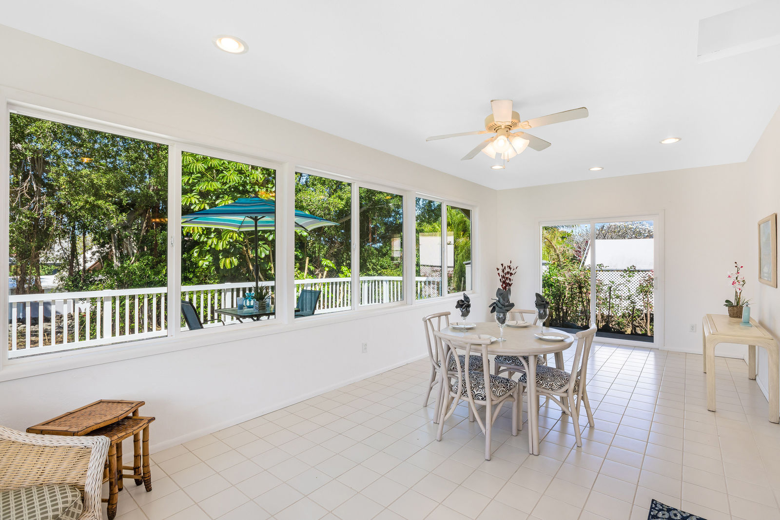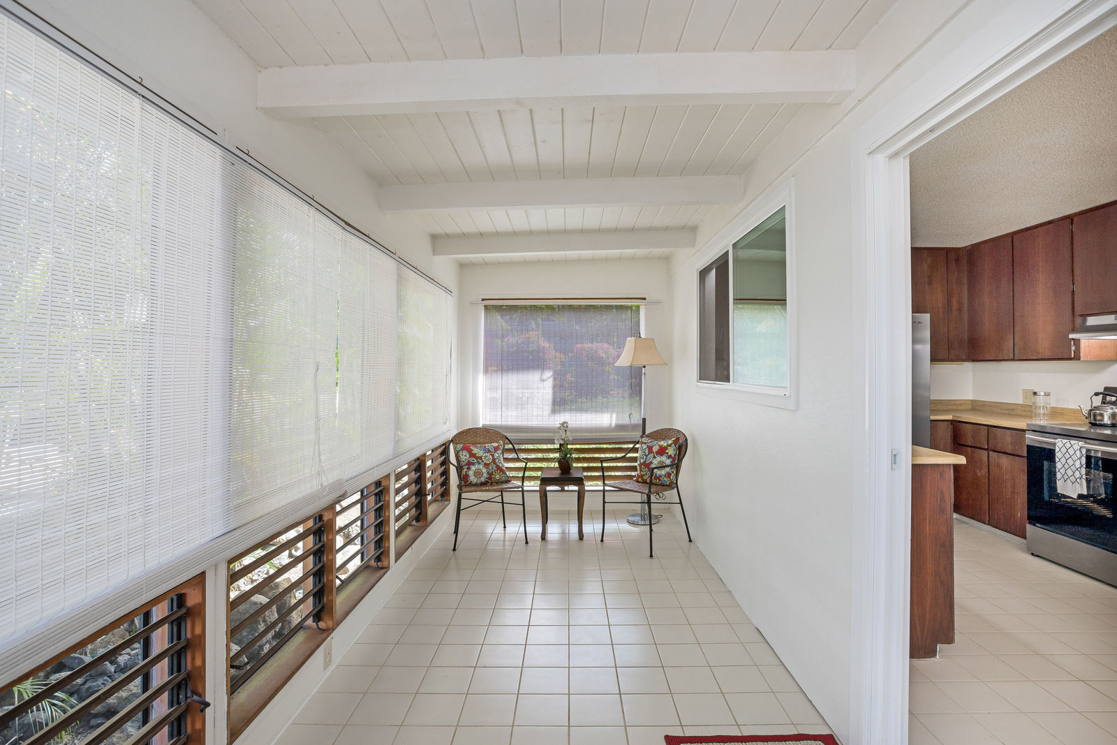 The interior living area has been expanded by enclosing the lanai.