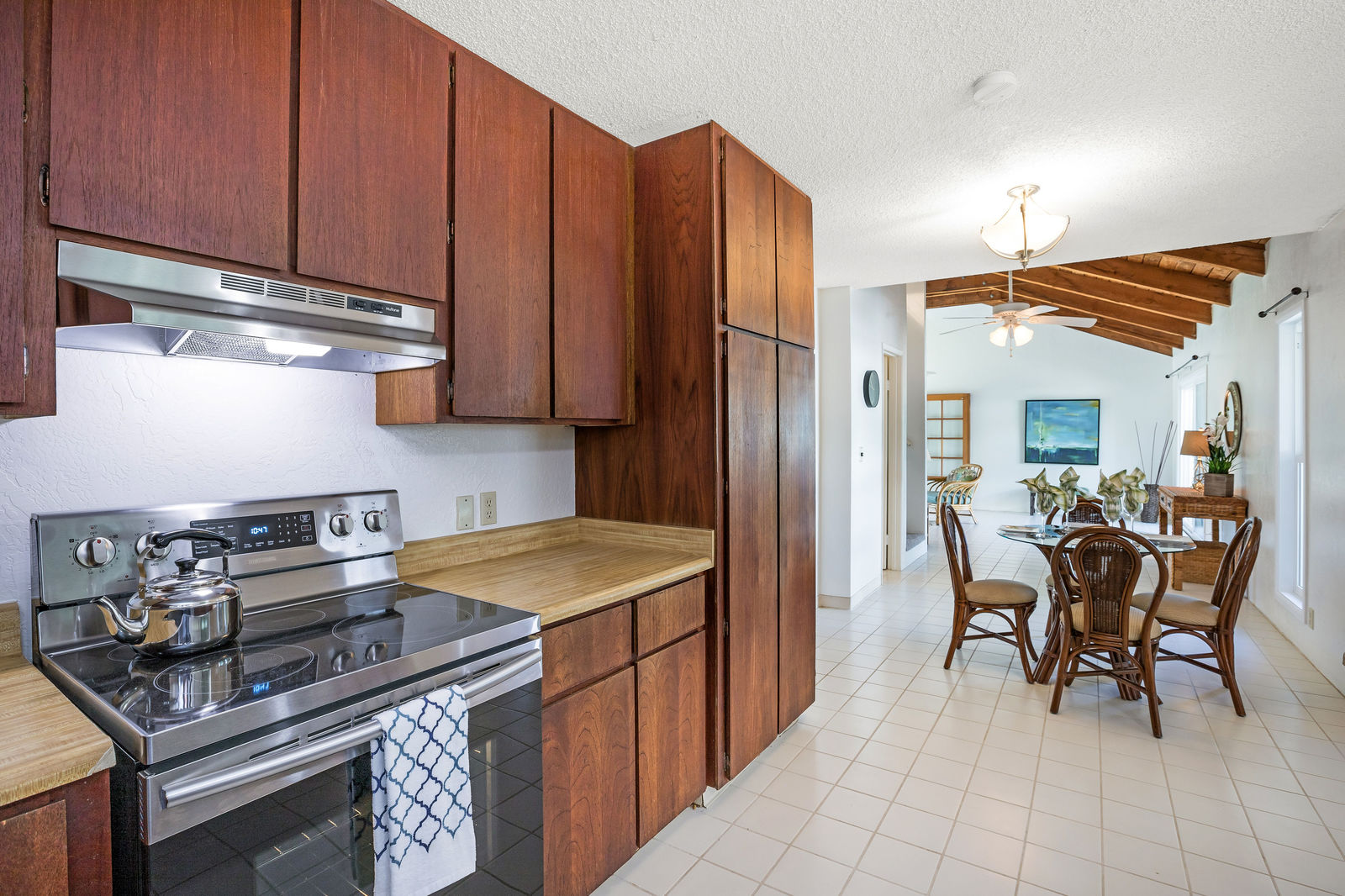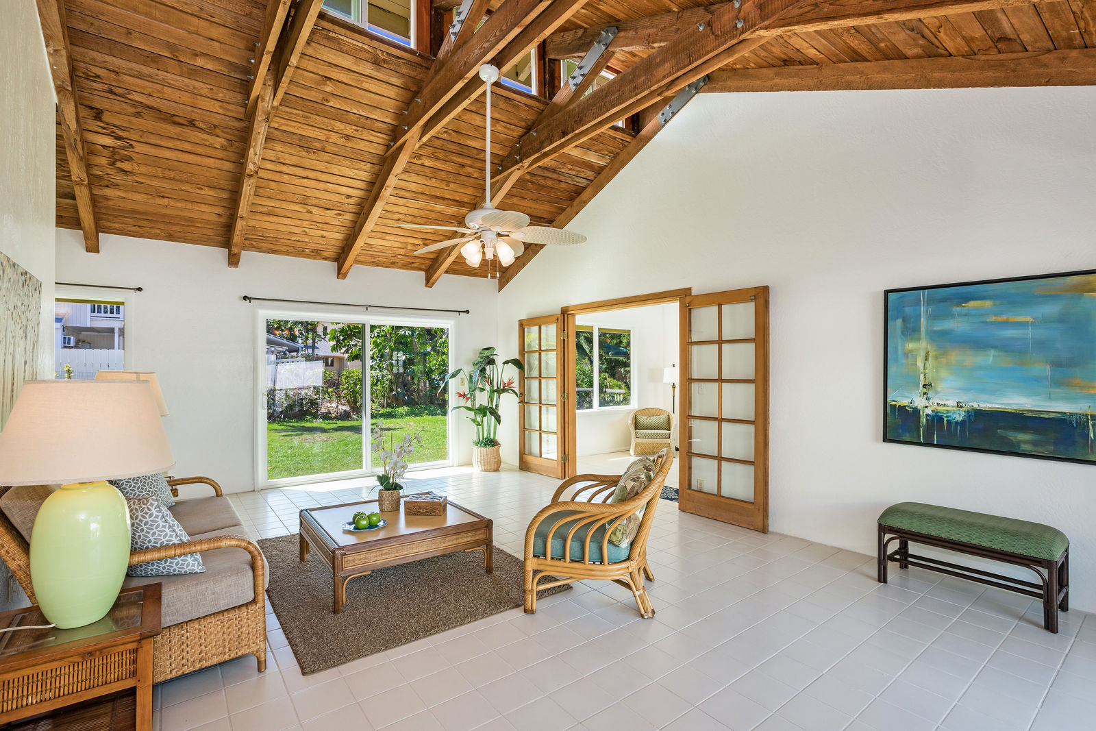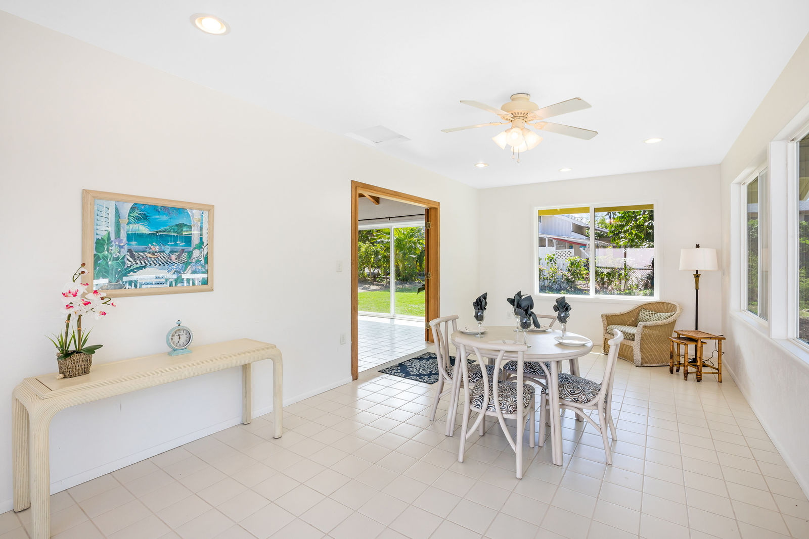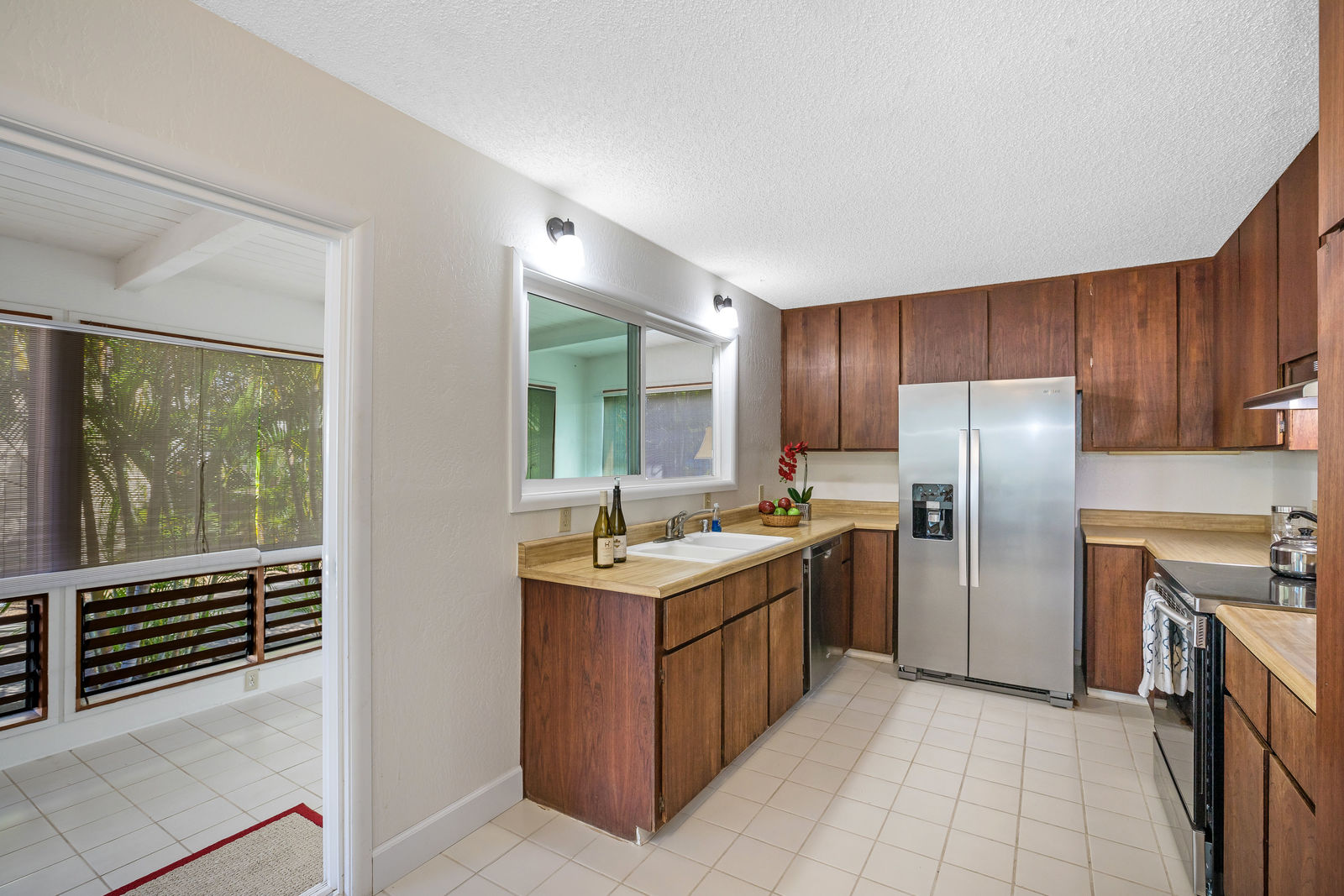 The interior living area has been expanded by enclosing the lanai.