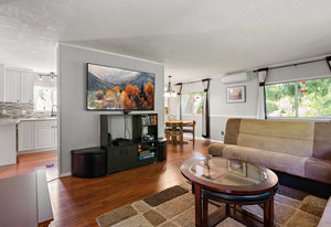 Nestled in the corner of Maple Ridge Estate, a Family Friendly Park, no age restrictions. Ideal Location in the park backing onto greenspace and park area. You will find a lovely sunny three bedroom, two bathroom home. Great space as soon as you walk into a bright sunroom with an attached workshop. Big kitchen with newer appliances and lots of storage. An eating nook that leads into a nice open living room. This double wide is a beautiful space for the family with a wood stove, energy-efficient heat pumps and wood laminate floors throughout the main. The primary bedroom is a generous size, with a vanity and ensuite. The laundry room is equipped with a brand new washer and dryer. Beautiful yard with private patio for those summertime BBQs and family gatherings. Close to all amenities that Sooke has to offer and within walking distance of two elementary and a middle school. An easy walk to the Village with its shops and bus route. Come make yourself at home and see what this home has to offer.