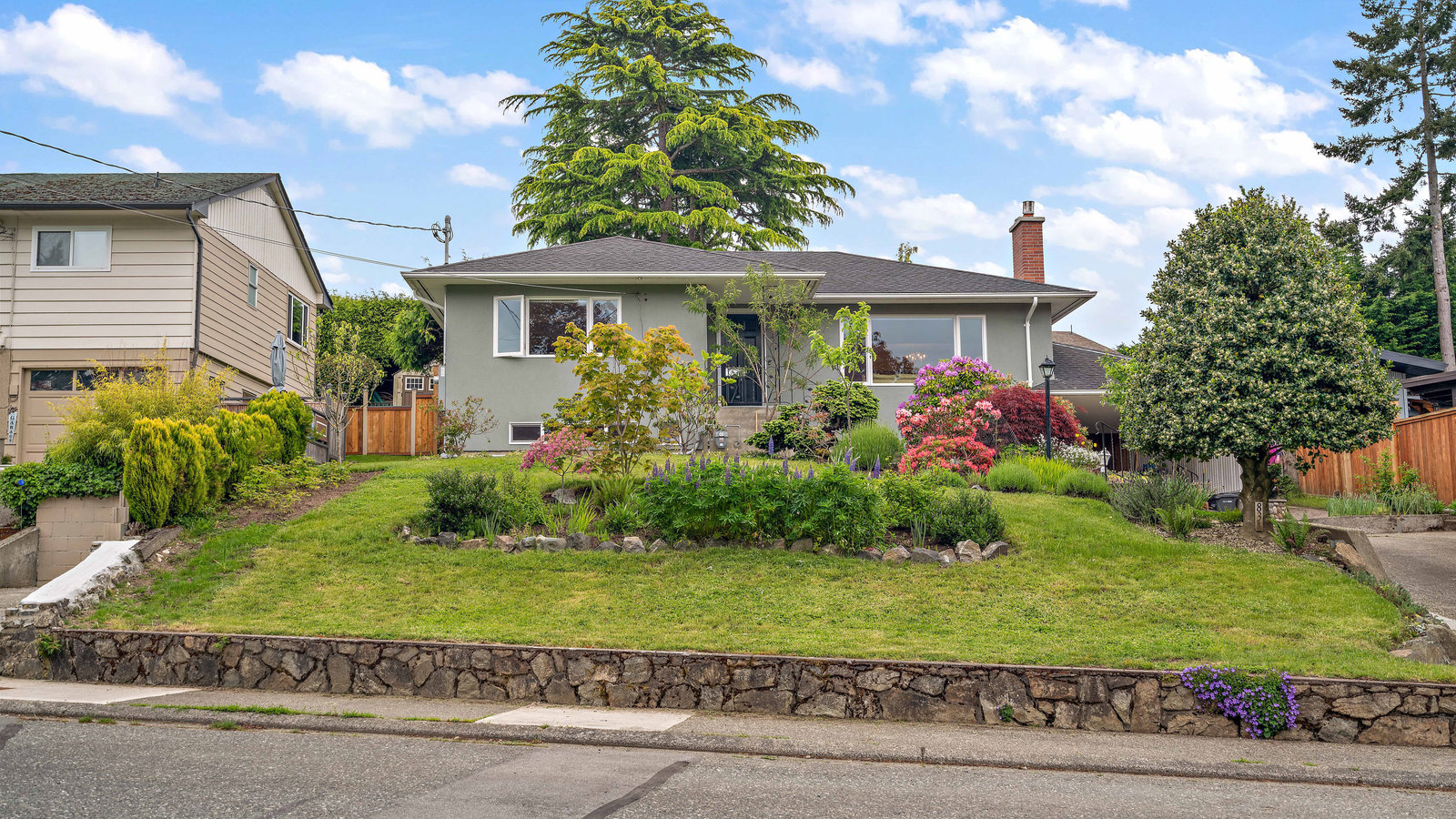 Situated on a quiet cul-de-sac in popular Rockheights, this charming 3 bed 2 bath home is a must see. Lovingly maintained with refinished oak floors, chimney repointing, new windows, hot water tank, perimeter drains (partial), water line to street & 200 amp electrical, yet still the charm of coved ceilings & your very own tranquil secret garden out back. The large bright living room features cozy gas fireplace & opens to formal dining room. The kitchen features plenty of cupboards & counter space with an eating area & access to the private south facing paved patio, substantial veggie gardens & fully fenced yard. Two good sized bedrooms & full bathroom complete the main. Lower level offers a third bedroom, bathroom, rec room, large utility/workshop & carport. Just 10 mins to downtown Victoria & easy access to great parks, schools, the Galloping Goose & all amenities. Add your own updates to complete this easy-to-suite home! Check out the media link for video, floor plan & virtual tour.