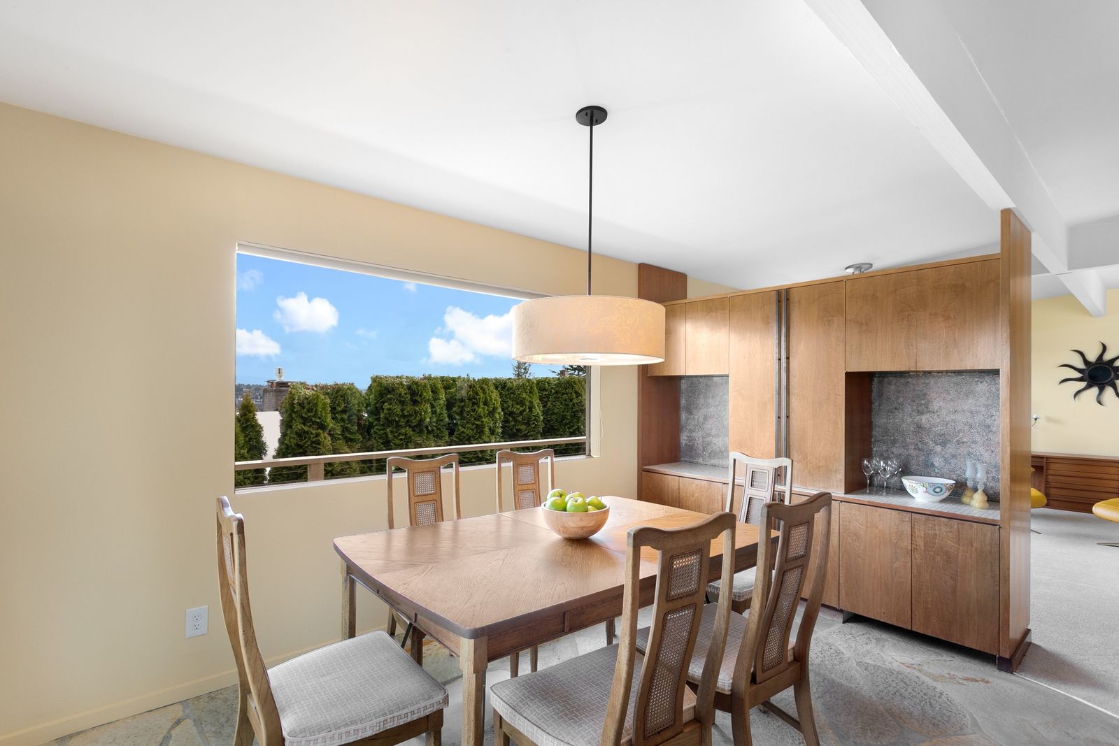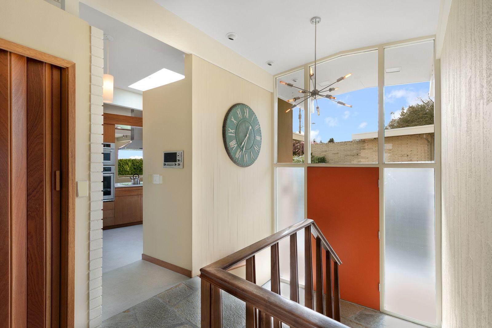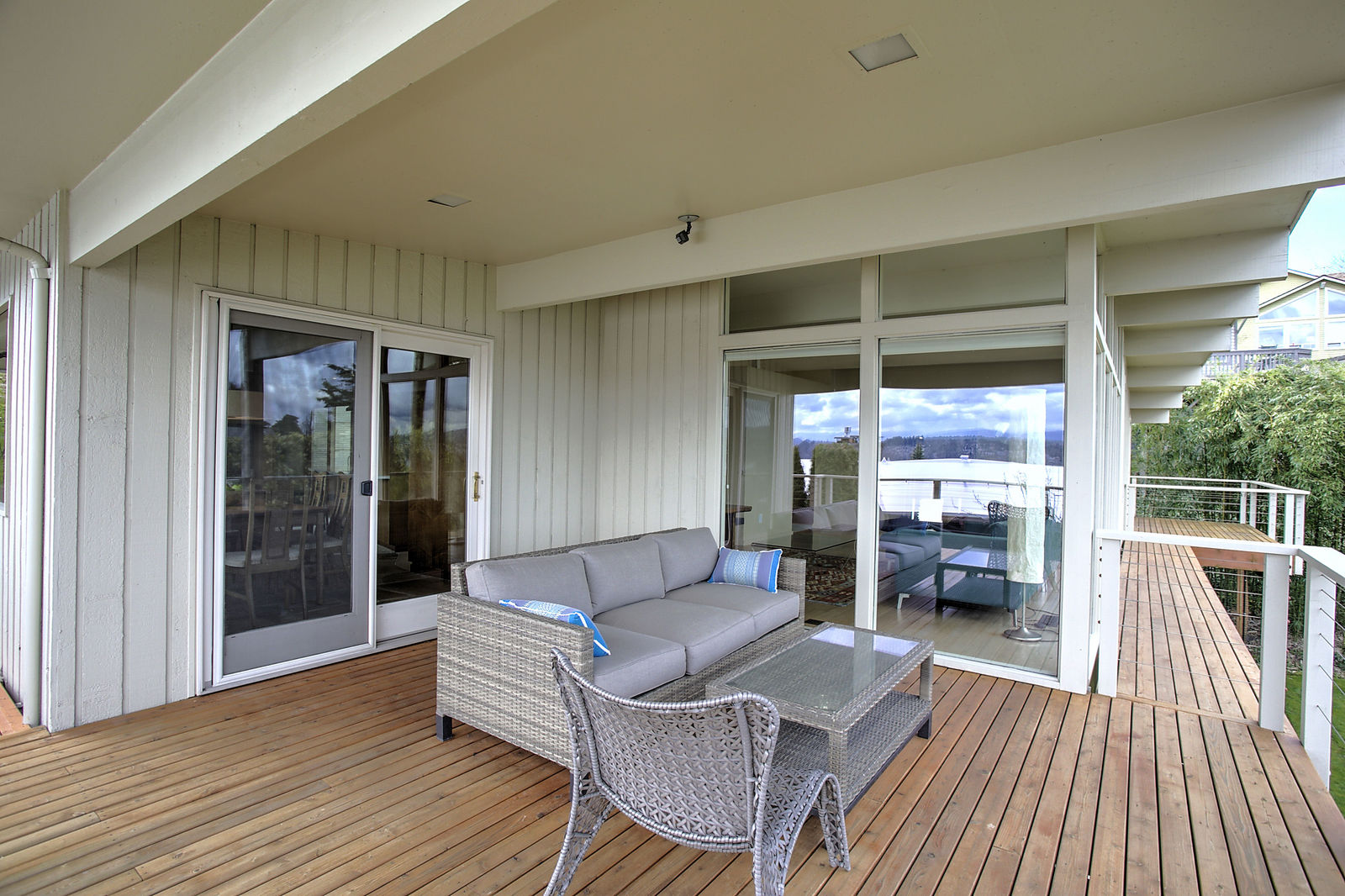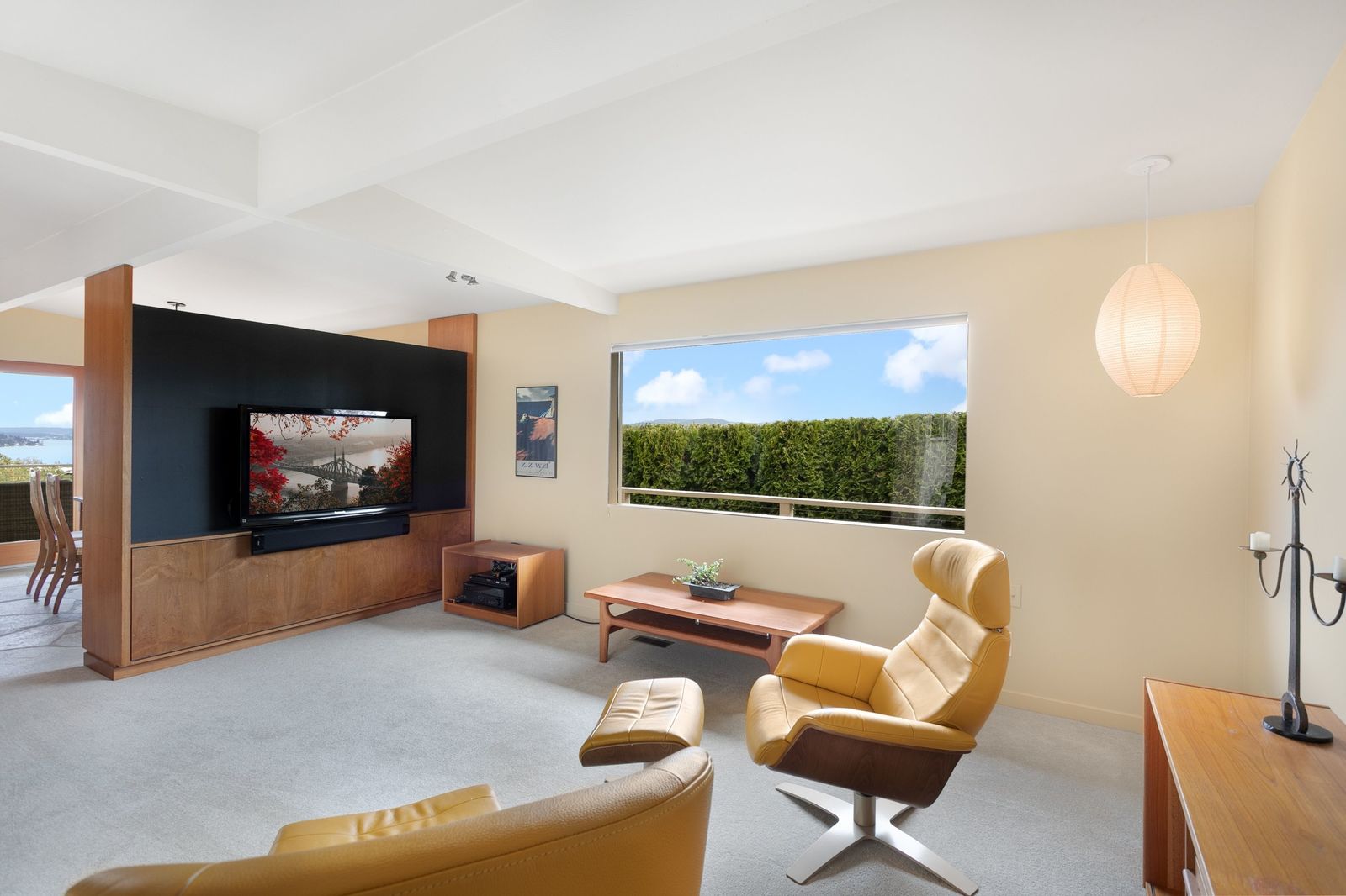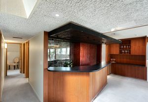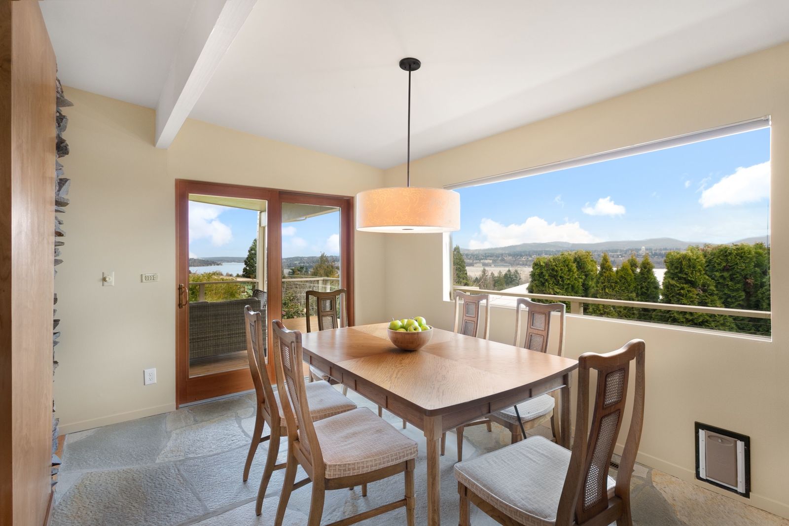 Panoramic Lake Washington and Mountain Views in Bryn Mawr! Private and Gated Custom Updated Mid-Century Home Located on a Quiet dead-end street with a warm and bright open floor plan.