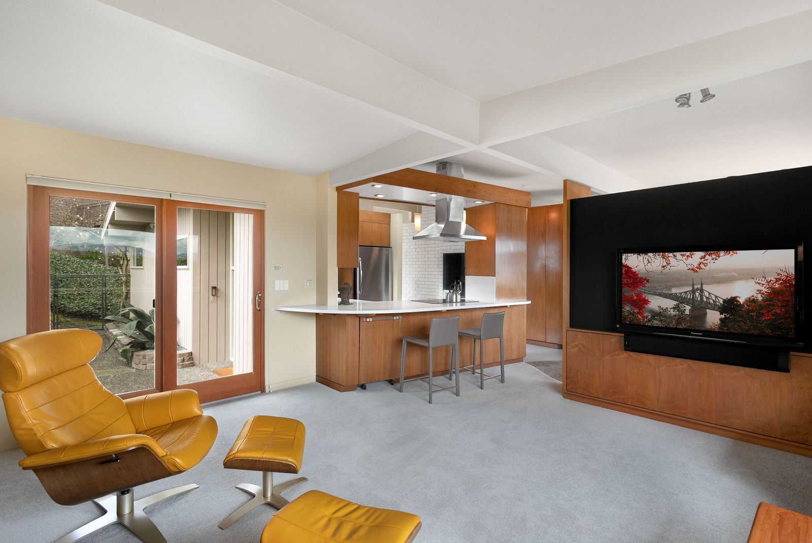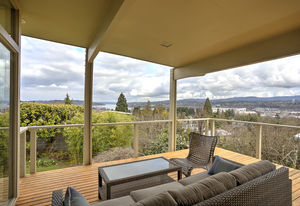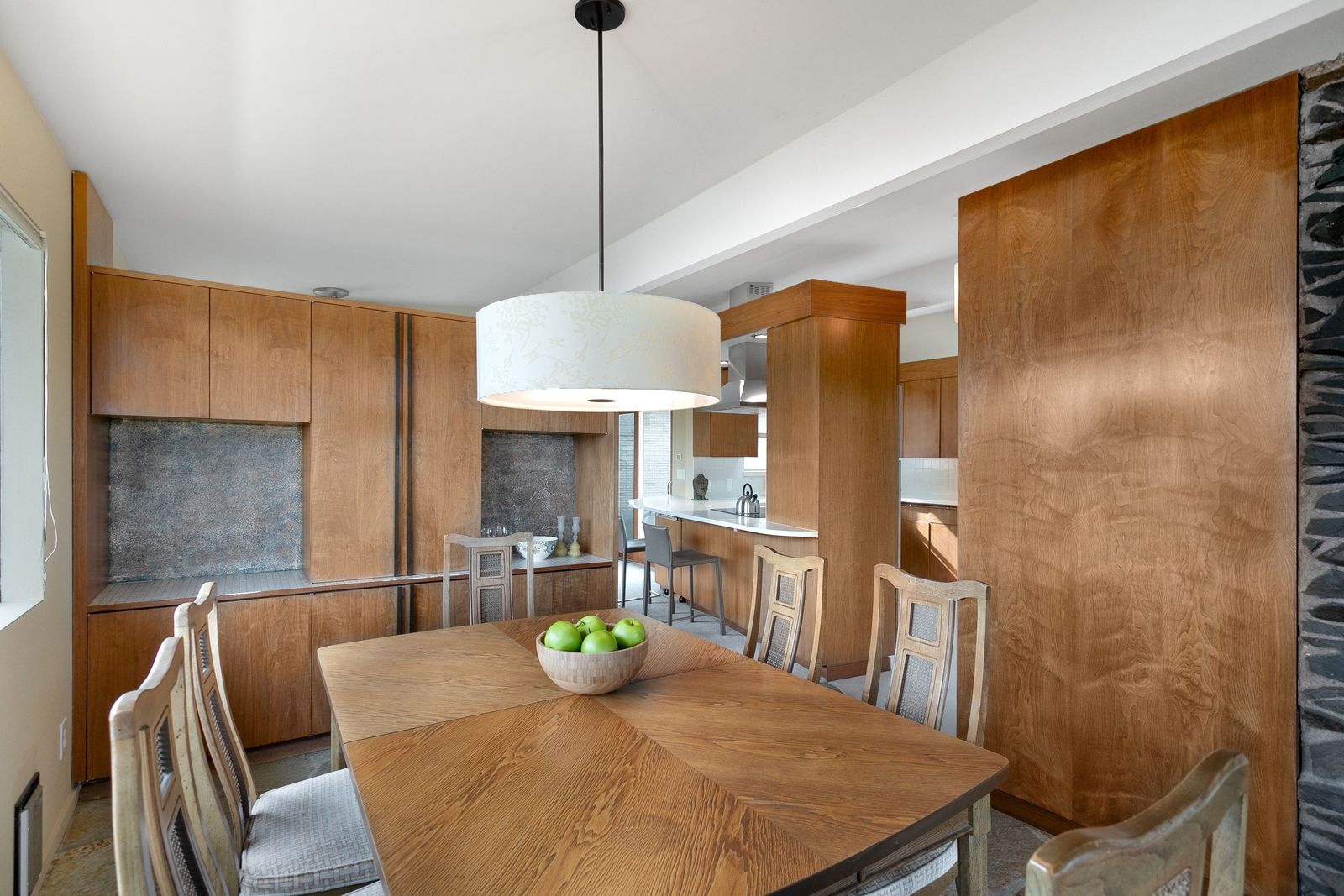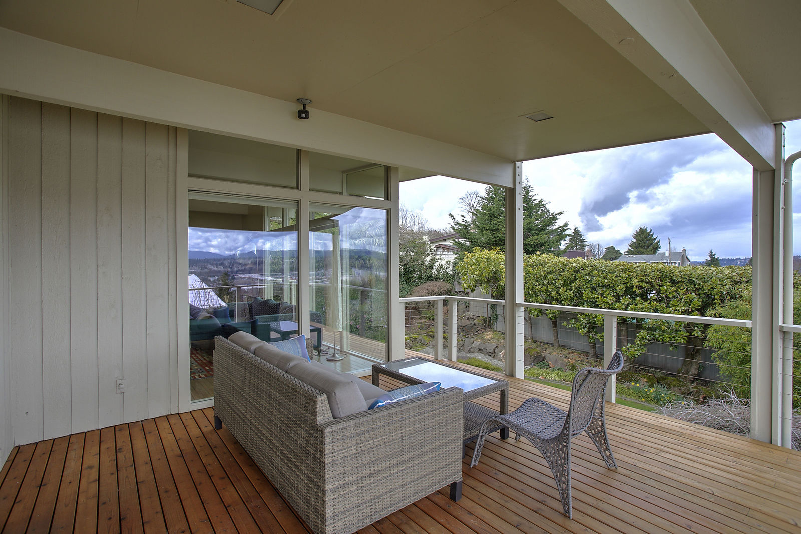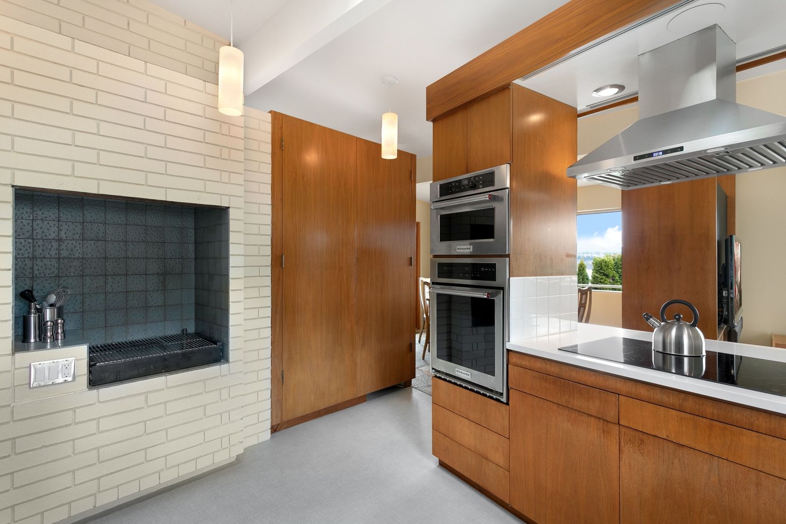 Panoramic Lake Washington and Mountain Views in Bryn Mawr! Private and Gated Custom Updated Mid-Century Home Located on a Quiet dead-end street with a warm and bright open floor plan.