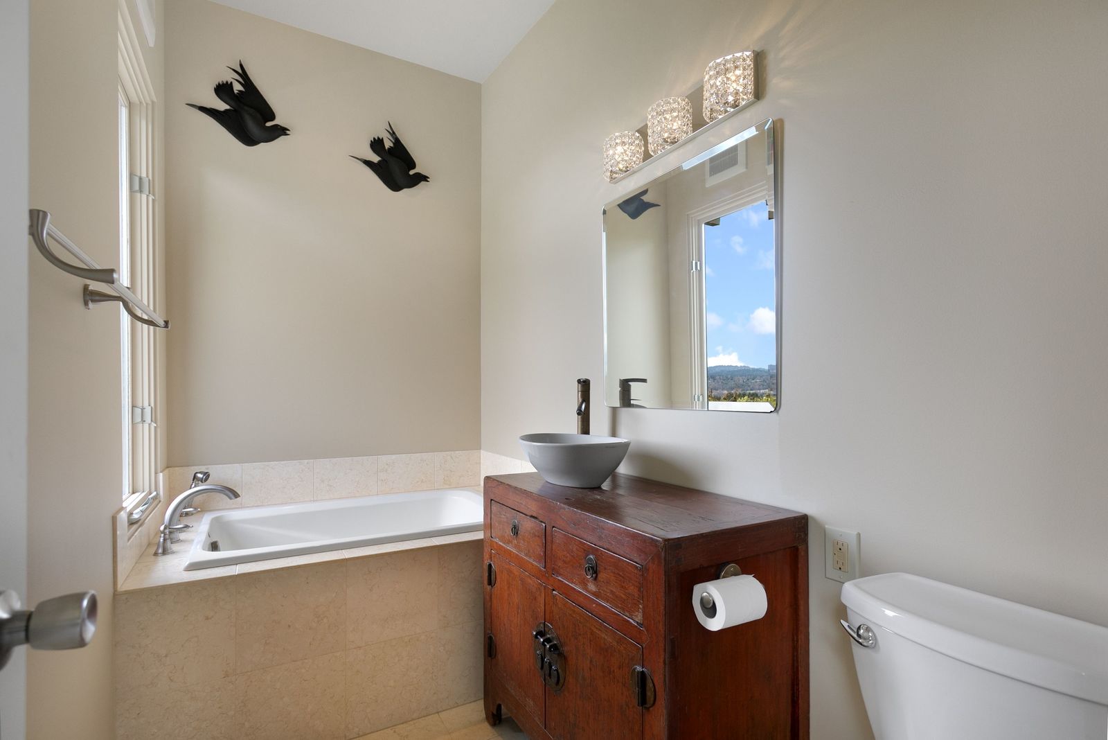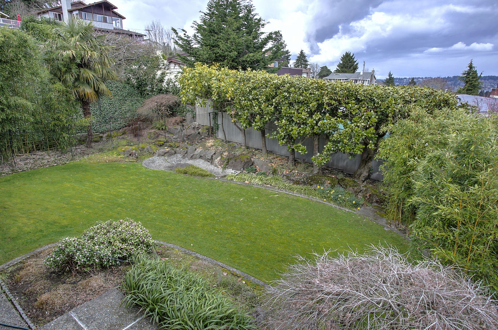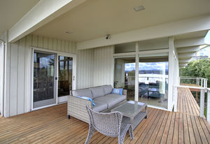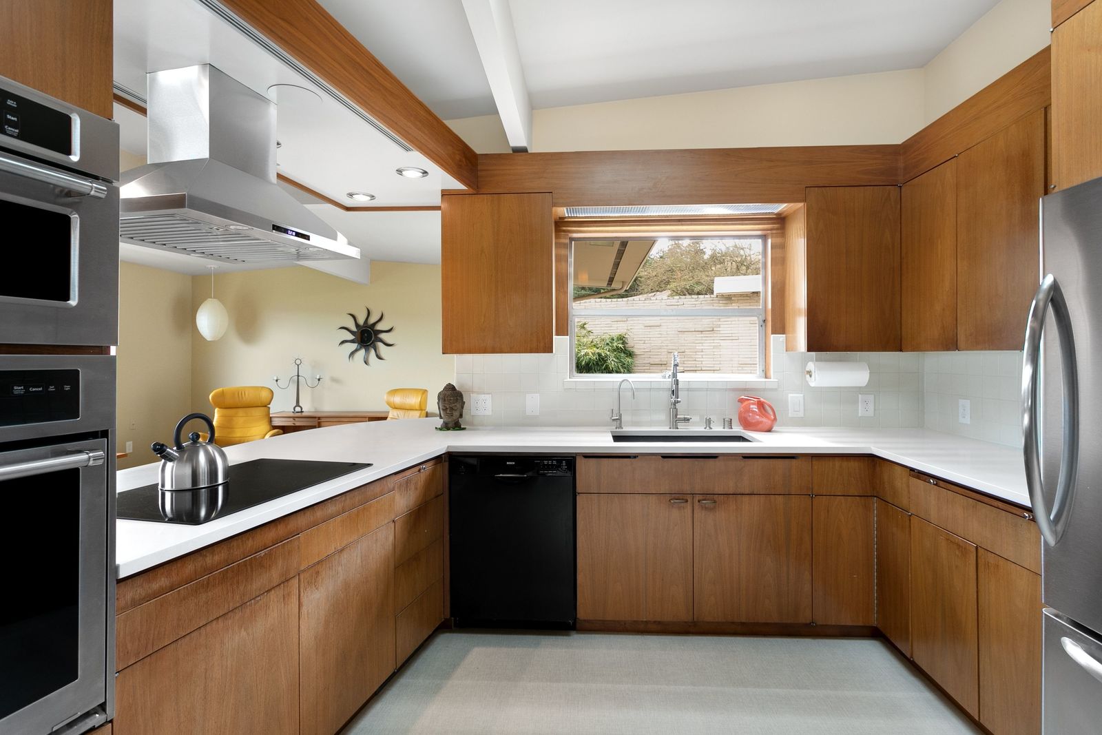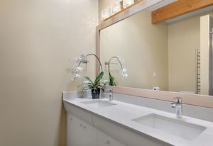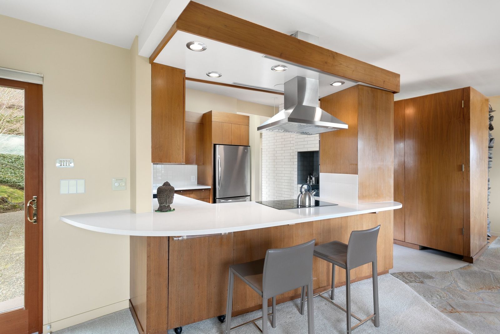 Panoramic Lake Washington and Mountain Views in Bryn Mawr! Private and Gated Custom Updated Mid-Century Home Located on a Quiet dead-end street with a warm and bright open floor plan.