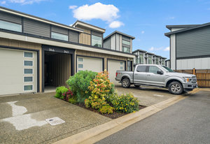 Enjoy beautiful views from this near new townhome in a very well run 10 unit complex located in the vibrant West Shore area close to schools and great shopping. This home has 3 good sized bedrooms plus den. Features include: Quartz Counter tops throughout kitchen and all baths; LED lighting fixtures; designer plumbing fixtures; tile flooring for main bath and ensuite, single attached garages and 2 decks with a great view. No age restriction and pets okay. Balance of New Home warranty.
