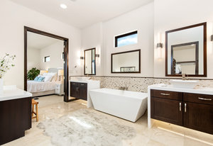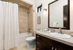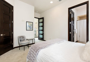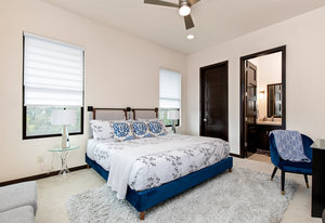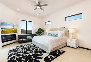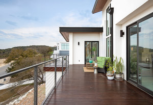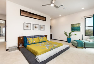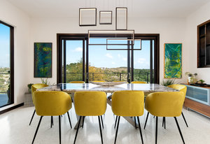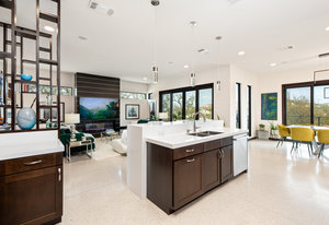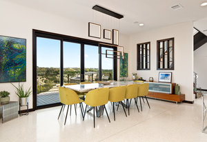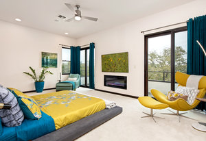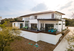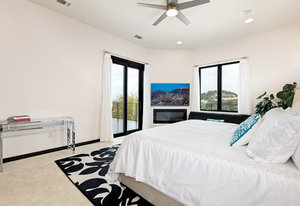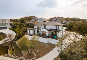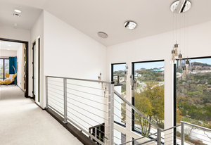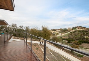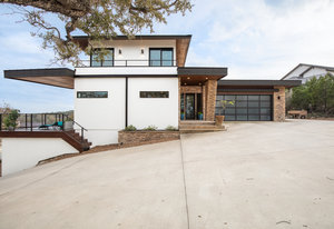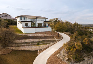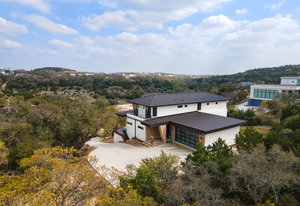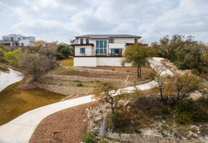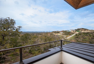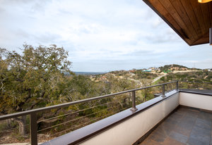Exquisite finishes in this 4 bedroom, 4.5 bath contemporary home in the prestigious Canyons at Scenic Loop. Expansive unobstructed views from the over 1200 sf of wraparound terraces. Reach this hilltop home along the winding tiered dry-stack stone driveway and the views take over from there. This over 3800 square foot home offers 4 bedrooms complete with private bath, plus a study and an oversized 2 car garage. There are two primary suites, one up and one down. Both boast a zen spa environment with walk in showers, separate contemporary garden tubs and expansive custom closet space. The smart layout features terrazzo flooring throughout the first floor and terrazzo backlit staircase. High end custom finishes throughout including modern lighting, designer tile work, Thermador appliances, butlers pantry/servery w/bar sink & wine refrigerator, & custom cabinetry in all wet areas. The living area is anchored by the stylish floor to ceiling tiled fireplace w/end to end mounted TV. Additional amenities include water softener, state of the art irrigation system, several storage options, and very private back yard space to top it all off. Convenient location close to La Cantera, The Rim, medical options, and NISD.