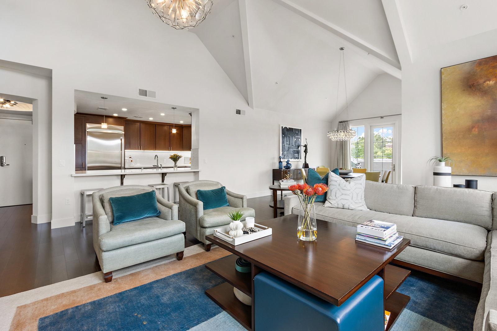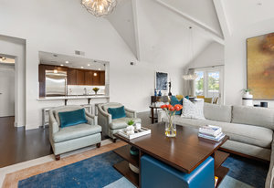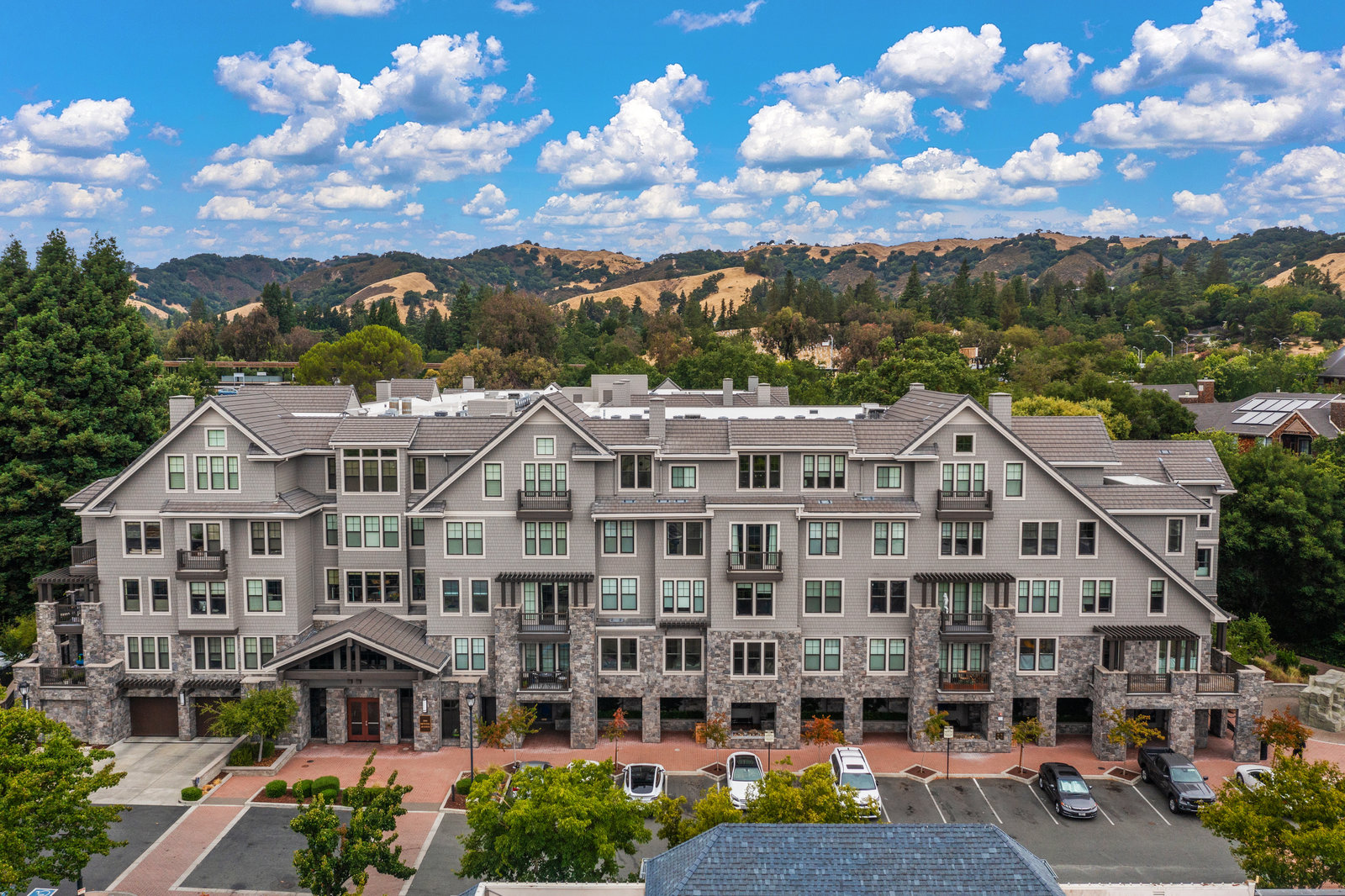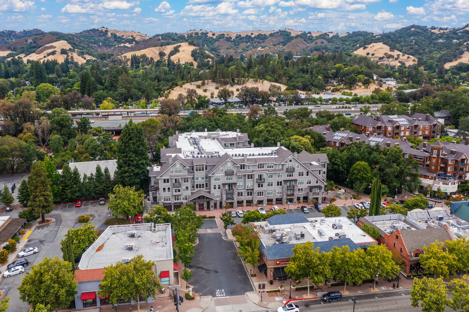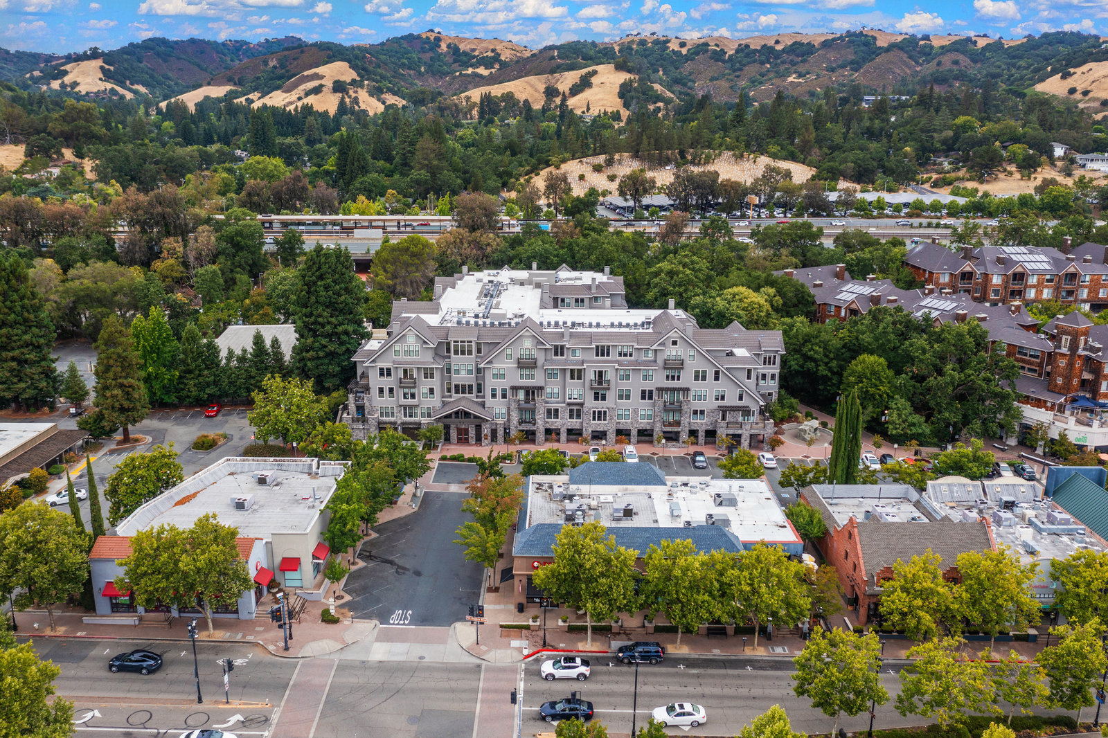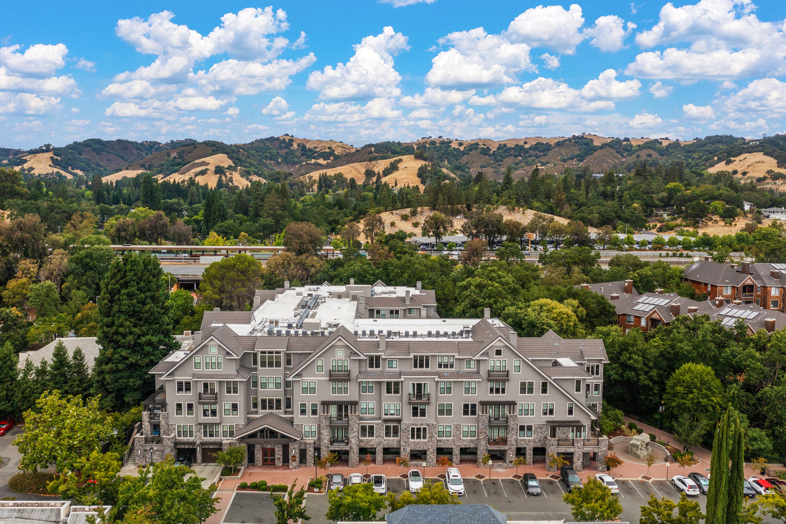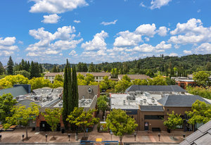 Welcome to Unit 416 – a rare and sophisticated top-floor sanctuary in the heart of downtown Lafayette. Ideally situated just steps from acclaimed restaurants, charming boutiques, cozy cafés, BART, and essential conveniences, this impeccably appointed residence offers an unparalleled blend of luxury, comfort, and location. Perched serenely on the fourth floor, the home is bathed in natural light and framed by soaring cathedral ceilings. Designer lighting—highlighted by an exquisite Ochre chandelier—adds a refined touch to the open-concept layout, thoughtfully designed for effortless modern living. Step onto your private balcony and take in sweeping vistas of Mt. Diablo and the rolling Lafayette hills—a tranquil retreat above it all. The chef’s kitchen, with stainless steel appliances, is both functional and beautiful, featuring Caesarstone quartz countertops, a striking glass tile backsplash, a 5-burner gas range, oversized built-in refrigerator, and ample counter seating—perfect for both entertaining and everyday living. The primary suite is a peaceful haven, offering dual vanities, a custom walk-in closet, and a spa-like ambiance that invites rest and relaxation. Additional highlights include: • Rich hardwood floors • In-unit laundry • Central heating and air conditioning • Two side-by-side assigned parking spaces • Bike storage • Secure building access Discover elevated living in one of Lafayette’s most coveted addresses. This exceptional top-floor residence is truly a rare offering.
