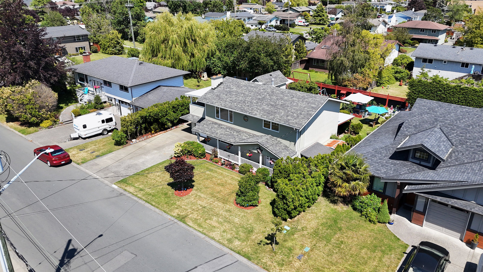 Stunning sun-drenched 3-bedroom (potentially 4) 2-bathroom home nestled on a meticulously manicured lot in tranquil Sidney. From the moment you arrive, the immaculate condition of both the home and grounds is immediately apparent, reflecting continuous care and upkeep. The main level features a family-friendly layout, perfect for entertaining with its open living and dining area, kitchen, a spacious 4-piece bathroom, and two generously sized bedrooms. Step outside onto the expansive covered deck overlooking the beautifully landscaped rear garden. Downstairs offers two bedrooms with potential for a third, along with a fully functional suite. A mudroom provides excellent storage space and an ...