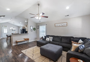 This upgraded RANCH Corner Lot home is a perfect place to start home ownership. From the start of an upgraded Garage door, to a full fenced in with rod iron backyard, to the exterior front porch landscaped, the front porch is a great place to sit and relax and watch the summer thunderstorms or read a book this fall enjoying the cool temps. The large backyard is perfect for pets and plenty of room for the kids to play. The inside is well maintained, the home has all the perks. The Great room has a nice accent wall as you enter into the home.....the kitchen has a nice open flow so you can cook while entertaining. The builder did not shortcut any of features throughout the home. If carpets are not your thing, this home you will not have to worry. This helps with keeping the home nice and clean with the bonus for easy sweeping or vacuuming. The location of the home is perfect as it is a short distance to all your major shops, schools and hospitals. This home is perfect for that first time home buyer or someone looking to downsize with little maintenance. Join us this weekend for our open houses.
