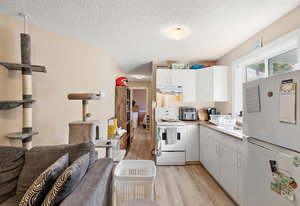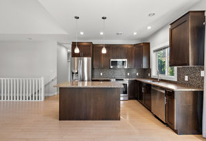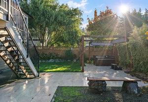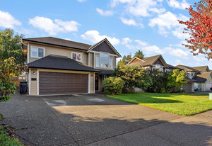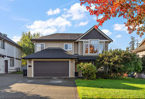This beautifully maintained & updated family home in convenient Happy Valley feels bright & new! With a total of 5 beds, 3 full baths, den & extensive outdoor space (including multiple patios & a great hot tub/gazebo area!) this home has enough space for a large family AND a 2 bed ground-level mortgage helper suite! The main level features vaulted ceilings in the living room which continues to an open concept kitchen & dining room w/ deck & yard access. The fully fenced sunny & flat backyard is south-facing & great for entertaining & letting the kids play in this fantastic neighbourhood. Enjoy the park or little library down the street, a stroll on the Galloping ...
