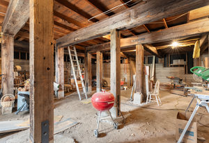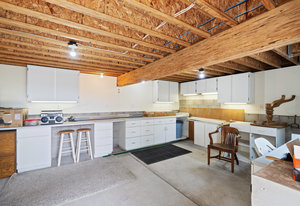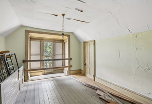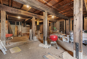 The main level has seen partial updates, including the breezeway, entry, laundry room, bedroom, full bath, and half bath. A spacious detached two-car garage with a finished workshop below with its own entrance have also been added, along with extensive foundation work to the home. Portions of the main level remain unfinished, while the upper level awaits full restoration, offering a blank canvas for future design.
