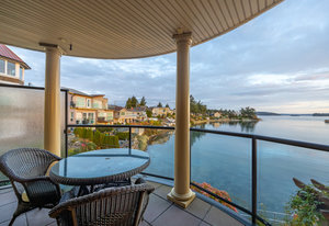 The spacious floor plan offers 3 bedrooms and 2.5 bathrooms, including a beautiful primary suite that opens to the waterfront. A private wine cellar adds to the home’s appeal, as does the massive 1,300+ sq. ft. interlocking brick patio—perfect for entertaining, gardening, or simply relaxing by the sea. Enjoy covered outdoor dining with built-in gas heaters and speakers, allowing for year-round enjoyment of this exceptional seaside setting. This property’s thoughtful layout makes it ideal for a home-based business, a live-in caregiver, or multi-generational living, offering both privacy and flexibility. Located steps from Sidney’s vibrant downtown, you’ll love being within easy reach of shops, restaurants, cafés, brew pubs, the cinema, and all the charm this seaside community offers. Homes of this caliber are rarely available. Experience waterfront living beyond compare. A truly special home within an exceptional building—crafted with care, designed for comfort, and positioned for breathtaking beauty.