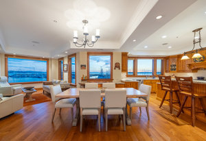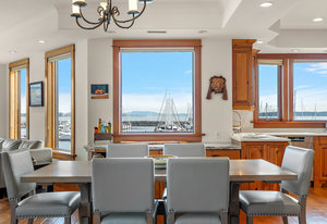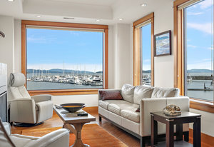 Exceptional Waterfront Living in the Heart of Sidney! This custom-built, one-owner waterfront half duplex offers over 2,800 sq. ft. of luxurious living, designed and constructed in 2007 to above-average standards and commercial-grade specifications. Designed for the owner to age in place, this remarkable home includes an elevator providing easy access between both levels, making it ideal for those seeking convenience, accessibility, and long-term comfort. Every detail of this home exudes quality. Step inside and be captivated by breathtaking views of the marina, Mt. Baker, and the ever-changing marine activity from nearly every room. The chef’s kitchen is a culinary masterpiece, featuring custom-built cabinetry, a Wolf dual-fuel range, wine fridge, and a Tuscan-inspired design that blends warmth and sophistication.