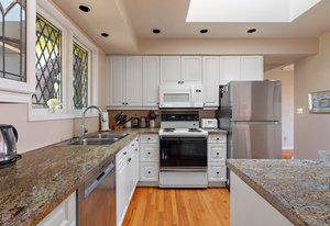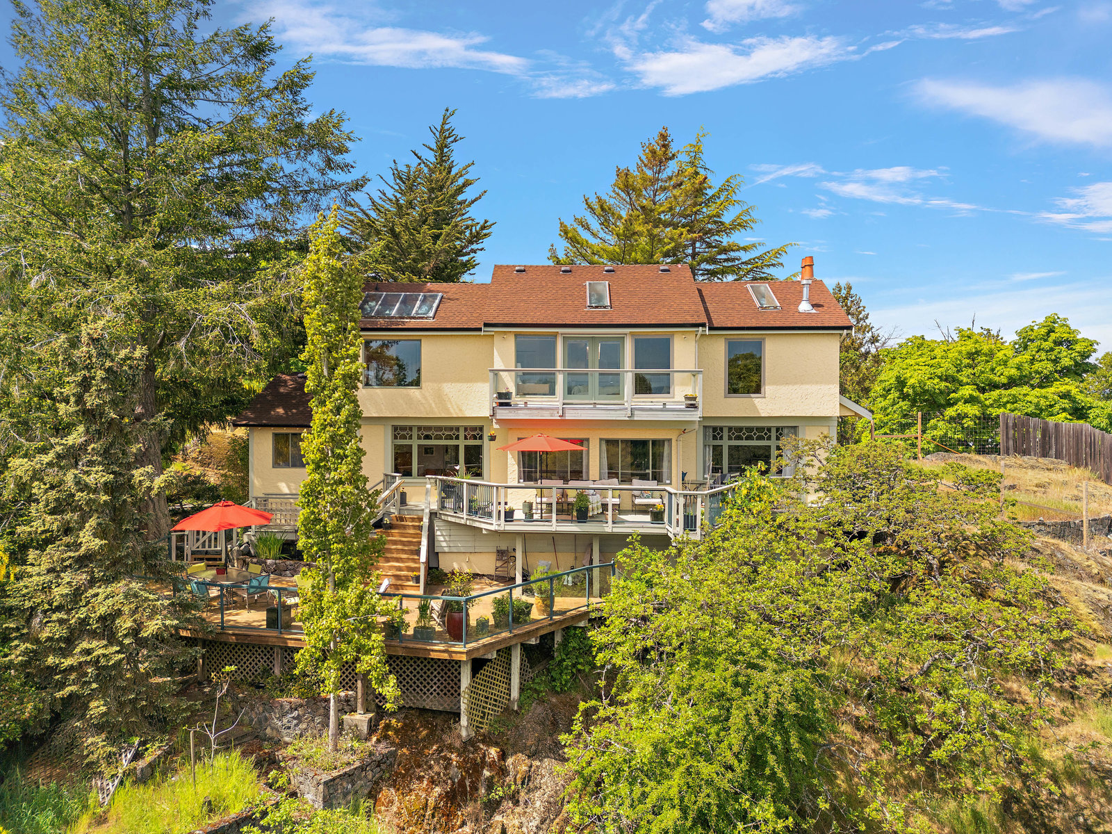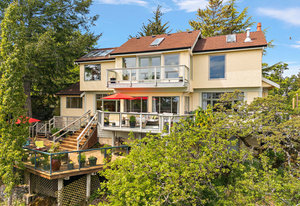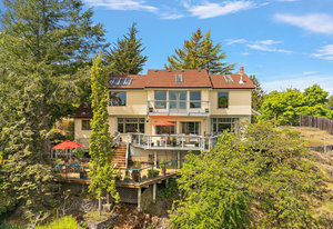 Only a half-block from Oak Bay junction, this three-bed, three-bath home feels worlds away from the rush of city living. The treed property has an incredibly private atmosphere, but it also takes in lush, panoramic views that stretch all the way to the ocean. Your front entrance is accented by elegant stonework and brick archways that lend historic charm. Features include wall-to-wall leaded-glass windows; romantic fireplace; and a butler’s pantry completing your spacious kitchen. The upper-floor houses an impressive suite with wood stove, skylights, and spa-inspired ensuite. Outside, three separate sitting areas face due east for glorious sunrises and leafy afternoons. A short walk takes you...