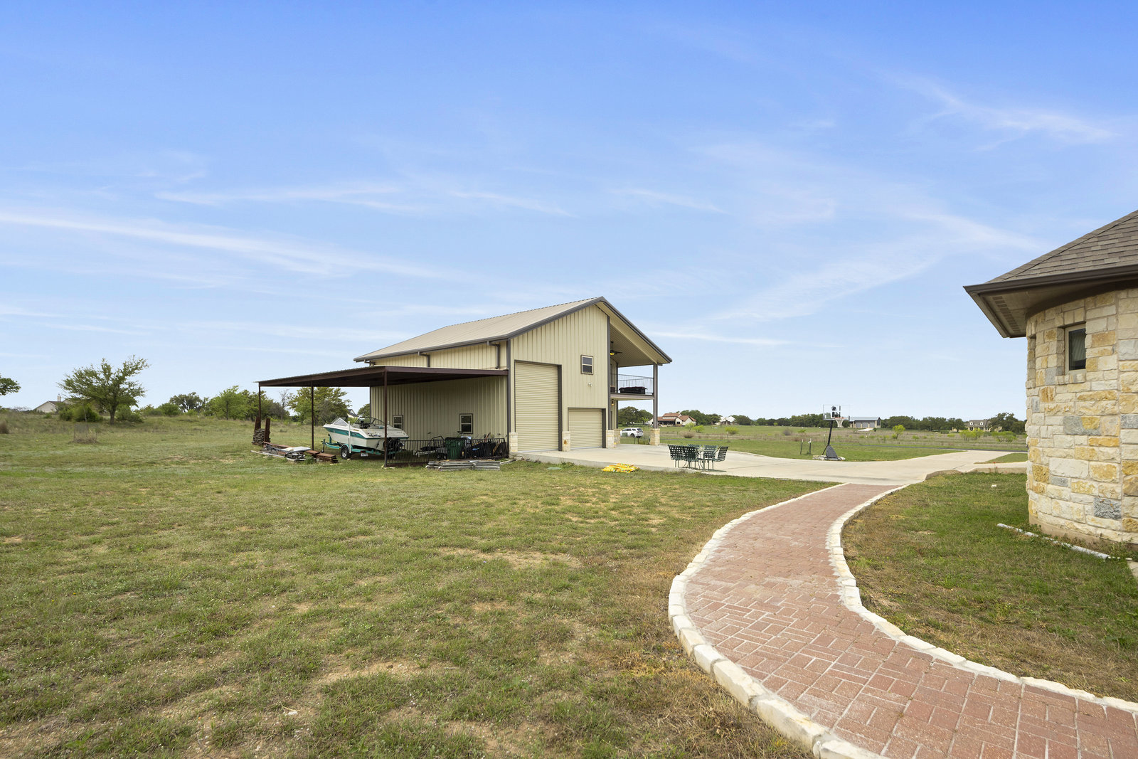 This property doesn't stop at the main house; a Barndominium offers a unique retreat with a second floor kitchen, living area, bedroom & bathroom and 1440 square foot of garage/workshop - a haven for hobbyists, DIY enthusiasts and those needing RV, boat and recreation vehicle storage. This versitile space features heated and cooled living space on the second floor and workshop/storage space on the first along with a half bath. Don't miss the experience of luxury living in the Texas Hill Country.