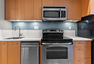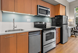 This stylish one-bedroom unit is part of “The 834,” an impressive glass, steel, and concrete condo tower in the heart of downtown Victoria. The property features an in-suite washer and dryer; hardwood floors; soaring high ceilings; and an extra large private patio area that faces due east. The kitchen comes equipped with modern, stainless-steel appliances. A four-piece bathroom boasts floor-to-ceiling tiles, heated floors, and a deep soaker tub. The combined living-and-dining area gives this unit a spacious feel, while the large, east-facing windows let in ample natural light. Shared amenities at “The 834” include a BBQ terrace, a roof-top patio with panoramic views, and an ...