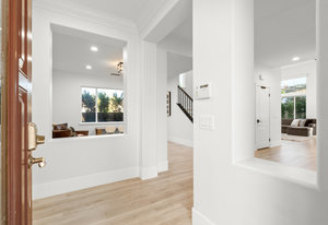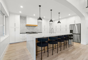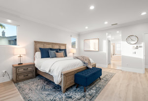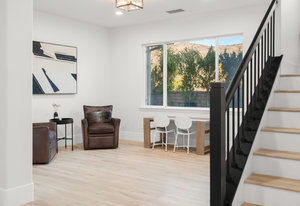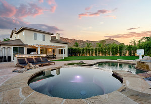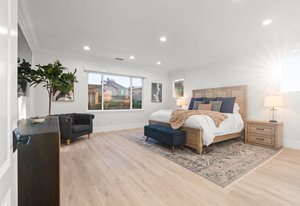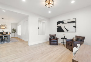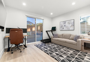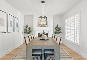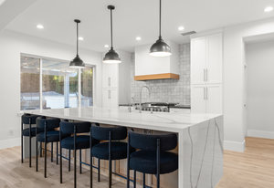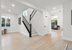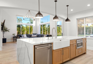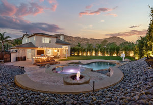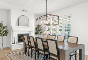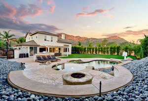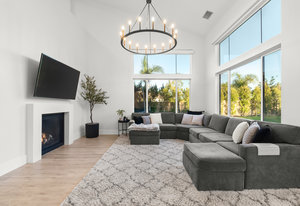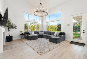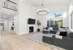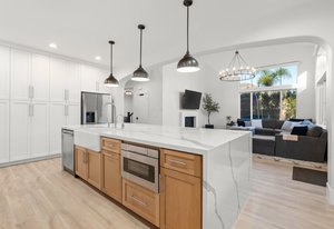 Step inside to a bright, open layout with high ceilings and expansive windows that frame views of the backyard and nearby mountains. The recently remodeled kitchen is a standout feature, showcasing a large quartz island, high-end appliances, abundant storage, and a clean, modern-yet-timeless design. The adjoining family room feels airy and inviting with its vaulted ceilings, upgraded fireplace, and views of the outdoor oasis.
