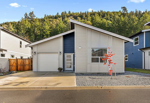 Introducing a stunning nearly new rancher for sale in the coveted Shawnigan Heights neighborhood. This modern home boasts a garage and double width driveway, offering ample parking and storage space. Enjoy the ease of single-level living and a thoughtfully designed layout that maximizes comfort and functionality. With high-quality finishes throughout, including quartz counters, stainless appliances, soft close cabinets and polished concrete floors, this home exudes contemporary elegance. You will love the open concept, no step living with soaring high ceilings and natural gas fireplace. Complete with 2 large bedrooms, 2 full bathrooms and a spacious den/office. Enjoy the benefits of having a new ...