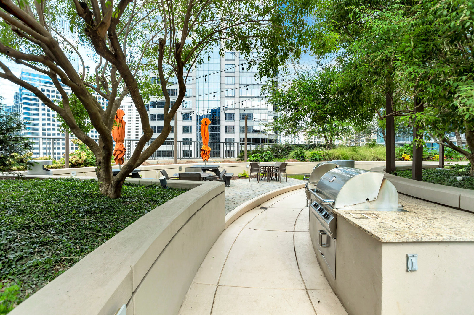 - Outdoor community grill area and seating