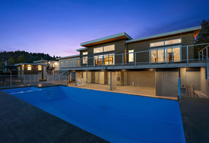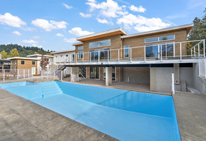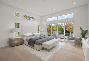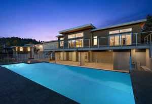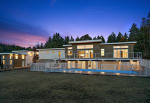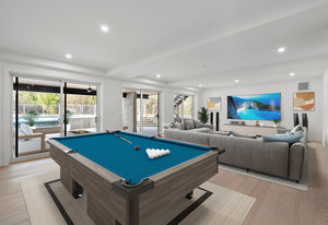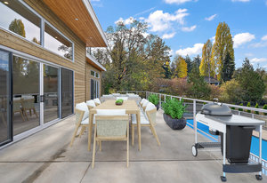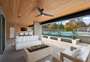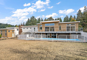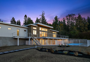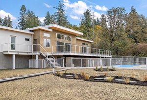 This new MCM style home is at the end of a quiet street on a one-acre level lot with a sunny southwest rear yard with private pond. The homes offer over 5,300 sq ft of living space with over 2,500 sq ft of outdoor entertaining space plus triple garage, double carport, boat /RV parking and a separate carriage house. The main house has 4 large bedrooms all with their own ensuites, high ceilings, custom millwork, a chef's kitchen, heated tiled floors and a 33'x16 ' heated in ground saltwater infinite pool and hot tub. Large outdoor covered patios, bar and outdoor kitchen areas. The carriage house is detached and offers 2 bedrooms, high ceilings, patio and separate parking. The ...