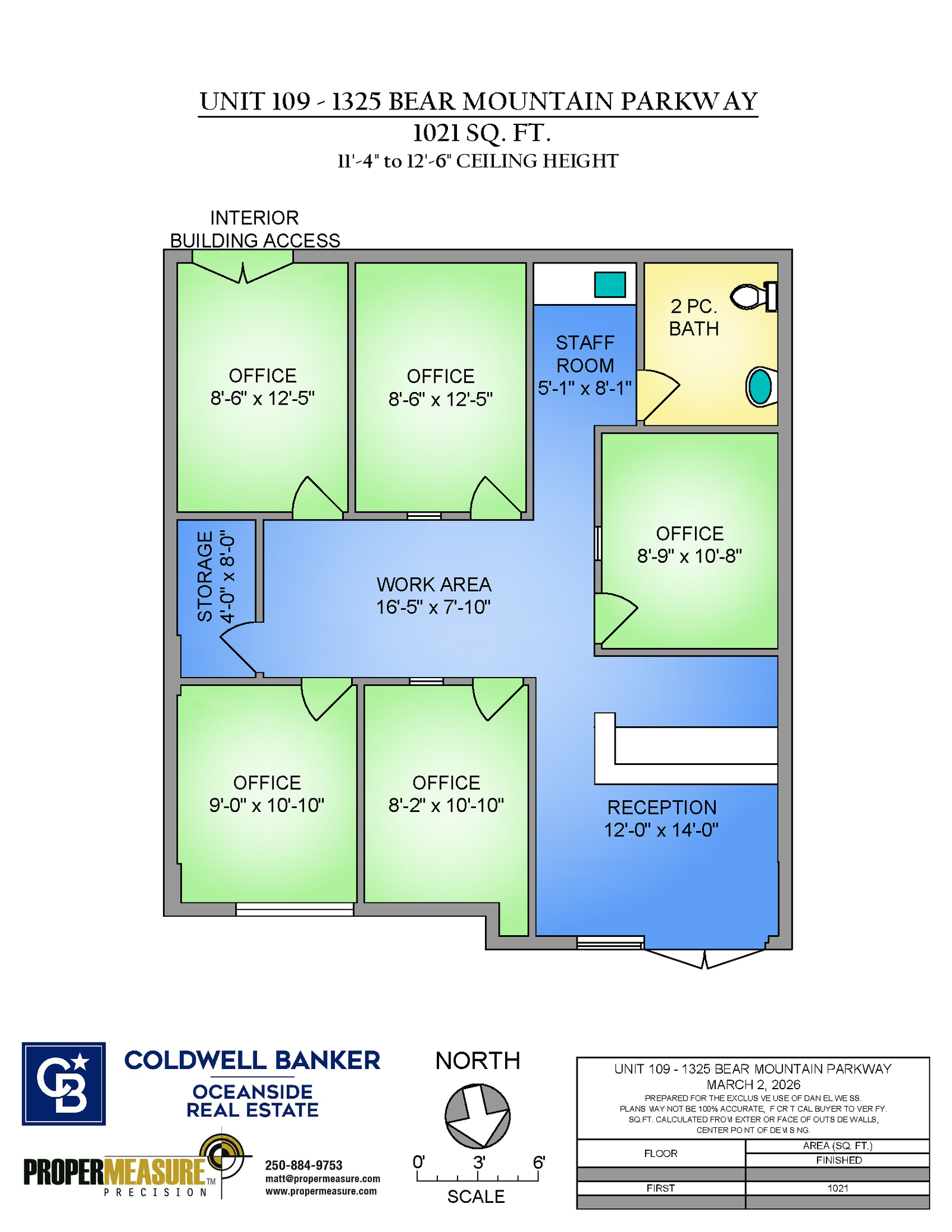 FABULOUS retail/office strata unit at the top of the prestigious Bear Mountain development, featuring five offices, a front-entry reception area, a two-piece bathroom, a kitchen area, a storage room, a central workspace, twelve-foot ceilings, Ethernet and Wi-Fi cable connections in every room, plenty of lighting, and a fantastic layout. Ideal for a professional office or service retail establishment. Freshly painted and in excellent condition. With strata approval, a second exterior front entrance could be installed for sub-lease purposes. Note the two underground parking spots.