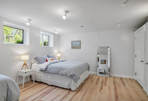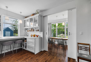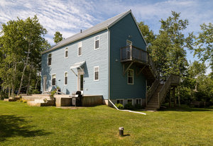 Nestled on a generous, landscaped corner lot, in a peaceful and family-friendly neighborhood, sits this 3-level custom designed home, with a 2nd floor water view, 2 complete kitchens, 2 bathrooms, 3 bedrooms, 2 Living rooms, a dining room, & laundry room. Built for independent living on each floor, with a 2nd floor private entrance & large deck; designed to be either 2 private living spaces, or one large multi-generational living space. This home was built with high quality materials; including large custom vinyl windows; allowing lots of natural light throughout, Canadian hardwood floors, cathedral ceiling, & natural wood siding. Efficient heat pumps to keep each level warm / cool as required to stay comfortable. Ample storage in the lower level, and an outbuilding for all your garden tools and sporting gear. There’s even a tree house in the yard for your little adventurer.