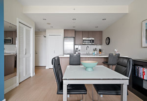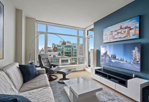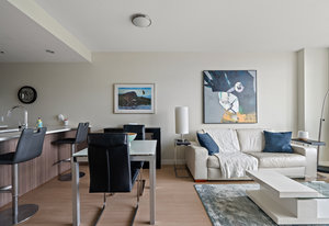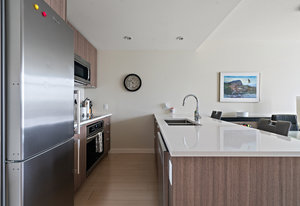 The open-concept layout makes the most of the space, with sleek stainless steel appliances, clean lines, and in suite laundry. Large windows let in tons of natural light and offer glimpses of the Pacific Ocean, adding a touch of West Coast charm to your everyday view.