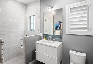 The large kitchen is truly the heart of this home. Equipped with stainless steel appliances and ample counter space, it creates an environment perfect for those who love cooking or entertaining guests. Indulge in the luxury of frameless glass showers in each bathroom that add a touch of sophistication.