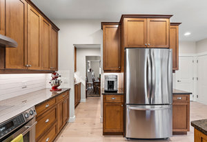 Located in the beautiful South Wilkinson Valley, surrounded by trails and parks, this Stunning Home features a fabulous floor plan with formal living room & fireplace, dining room with butler's pantry, a gourmet kitchen with granite counters and adjoining family room with 2nd fireplace. French doors invite you out to a large patio-ideal for outdoor entertainment, all weather play turf, lush gardens, and raised beds, all fully fenced and irrigated. A grafted apple tree, a cherry tree, and blueberry bushes are well rooted and enjoy bountiful harvests. Follow the staircase up to 4 generous bedrooms, including a grand Primary with luxurious ensuite featuring separate shower and soaker tub. The 4th bedroom could be a media/games room with space for the big screen. Also upstairs is a large laundry room with plenty of storage and counter space. Check out the media link for video, floor plan & virtual tour.