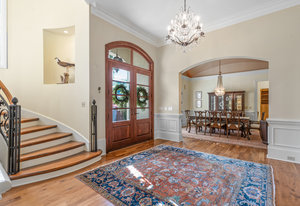 An extraordinary European-inspired estate in the heart of Ballantyne Country Club, this architectural gem blends timeless elegance with refined craftsmanship. An elegant spiral staircase and barrel dome ceiling set the tone for the open, light-filled layout. The great room features hand carved travertine mantel, the chef’s kitchen offers top-appliances, custom cabinetry, and wet bar. Designed for luxury and flexibility, the home offers 2 spacious primary suites for multigenerational living or hosting guests in style.The outdoor area is all seasons entertainer’s dream: covered patio is newly upgraded with built-in grill, outdoor IR heaters, fireplace, and heated resort-style pool. A 3-car garage adds everyday convenience. Ballantyne Country Club offers optional multiple tiers membership with access to golf, tennis, fitness, dining, and social calendar. Perfect blend of European charm and modern luxury, just minutes from Ballantyne’s top dining, shopping, and schools.