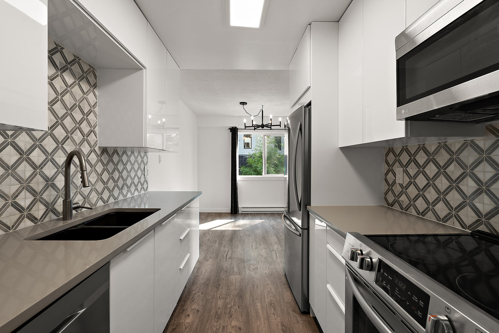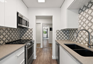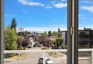***Brand New Quatz Kitchen Counter Tops Aug 2025.***Build sweat equity without lifting a finger. The strata are proactively planning for new hallway renovations and plumbing upgrade with the intent to allow secondary bathrooms & in-suite laundry & possibility of pets (buyer to verify). Major upgrades already completed, including the roof, elevator, exterior envelope, & windows giving the complex a refreshed new feeling, while having spacious layouts. Perched on the 3 floor the unit faces south views of the olympic mountain range. Inside the unit was reno'd in 2022 with 3-bedroom, 1-bath, & den.