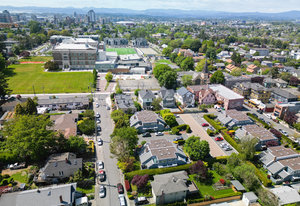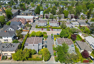 A comfortable 2-bed 2-bath townhome in the heart of Fernwood, just steps from the historic four corners! This beautifully updated home features a modern kitchen with quartz counters, stainless steel appliances & tile floors, plus wool carpets, refreshed bathrooms with eco-friendly marmoleum flooring, and energy-efficient fixtures. Enjoy cozy evenings by the wood-burning fireplace, vaulted ceilings, soaring walls perfect for art, abundant light from oversized windows and generous storage within this two level townhome. Flexible sleeping space with one bed on main & primary with ensuite encompassing entire top level - each with a deck/patio! Nestled in a peaceful, pet-friendly setting with ...