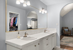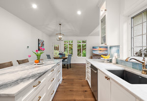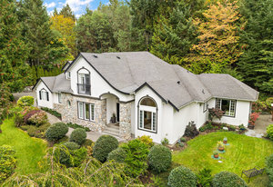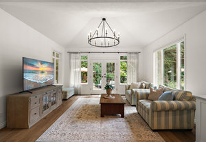 Set on nearly an acre of pristine, manicured grounds, this distinguished French Tudor residence blends timeless elegance with modern luxury. Classic details—arched entryways, French doors and windows, and vaulted ceilings—pair beautifully with a brand-new kitchen featuring premium appliances, including a 36" Wolf gas range, and an adjoining butler’s pantry. New hardwood flooring flows throughout the 3-bed, 3-bath, 3,274 sq ft home, adding warmth and sophistication. The expansive 2,400 sq ft main level showcases a grand foyer, formal living and dining rooms, a bright great room, casual dining area, garden-view office/den (potential 4th bedroom), laundry room, and a spacious ...