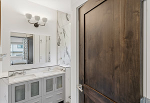 Upstairs, the private primary suite feels like its own retreat, complete with a spa-style bath, oversized shower, and dual sinks. Two additional bedrooms offer plenty of space for guests, work, or play each tastefully designed and move-in ready.