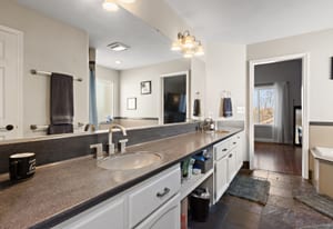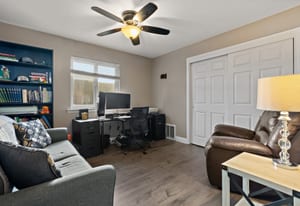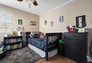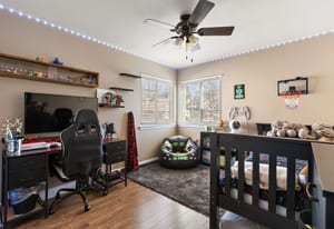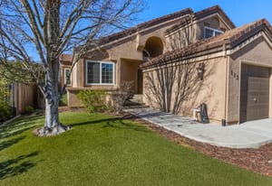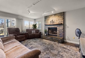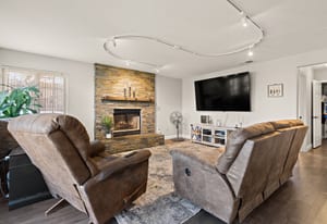 The kitchen is a chef’s delight with granite tile countertops and stainless steel appliances, opening to a breakfast nook and a step-down family room with a wet bar and stacked stone fireplace. Upstairs, the oversized primary suite serves as a true retreat with its own fireplace and spa-like bath. Outside, the low-maintenance theme continues with artificial turf and a covered patio, making this home as easy to care for as it is beautiful.