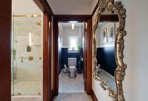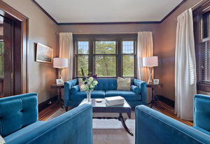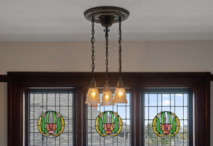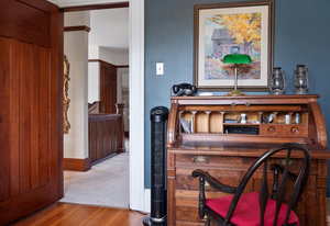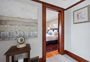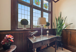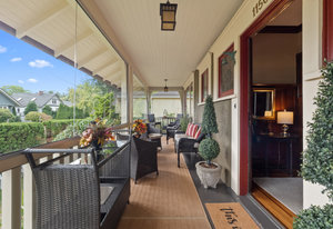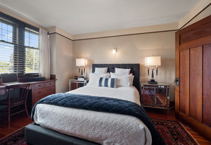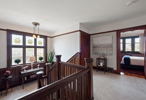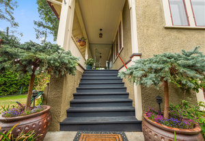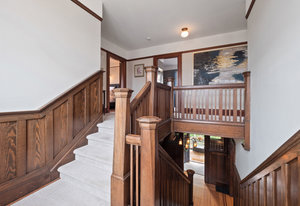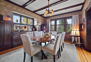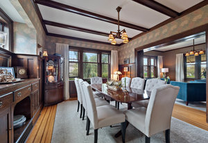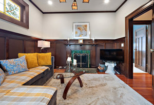 Upon entering, you will be greeted by beautiful mix of oak floors with mahogany inlay as well as old growth fir floors that add warmth and elegance to the home. A seamless transition of authentic architecture mixed with modern amenities including rich wainscoting, crown mouldings, coffered ceilings, built-in cabinetry, 3 charming fireplaces w/original brick chimney, stain-glass windows by William Morris.