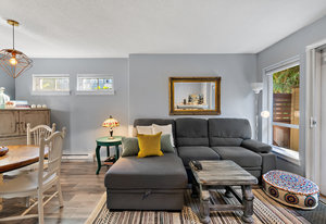 This charming and spacious end-unit townhouse offers over 1,000 square feet of bright, inviting living space, with the cozy comfort of a home. Located on a peaceful street yet just a short walk from downtown, this well-built residence features two levels, two bedrooms, and two bathrooms. As a corner unit, it enjoys an abundance of natural light and a serene position at the back of the complex, away from street noise. The townhouse is move-in ready with a host of modern amenities, including a recently updated hot water tank and sleek stainless steel appliances. Enjoy the convenience of in-suite laundry, a dedicated bike storage area, and a designated parking space. The south-facing patio is ideal ...